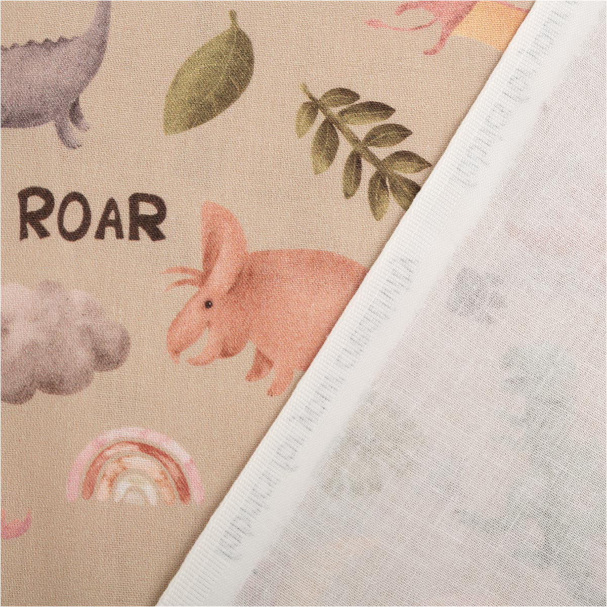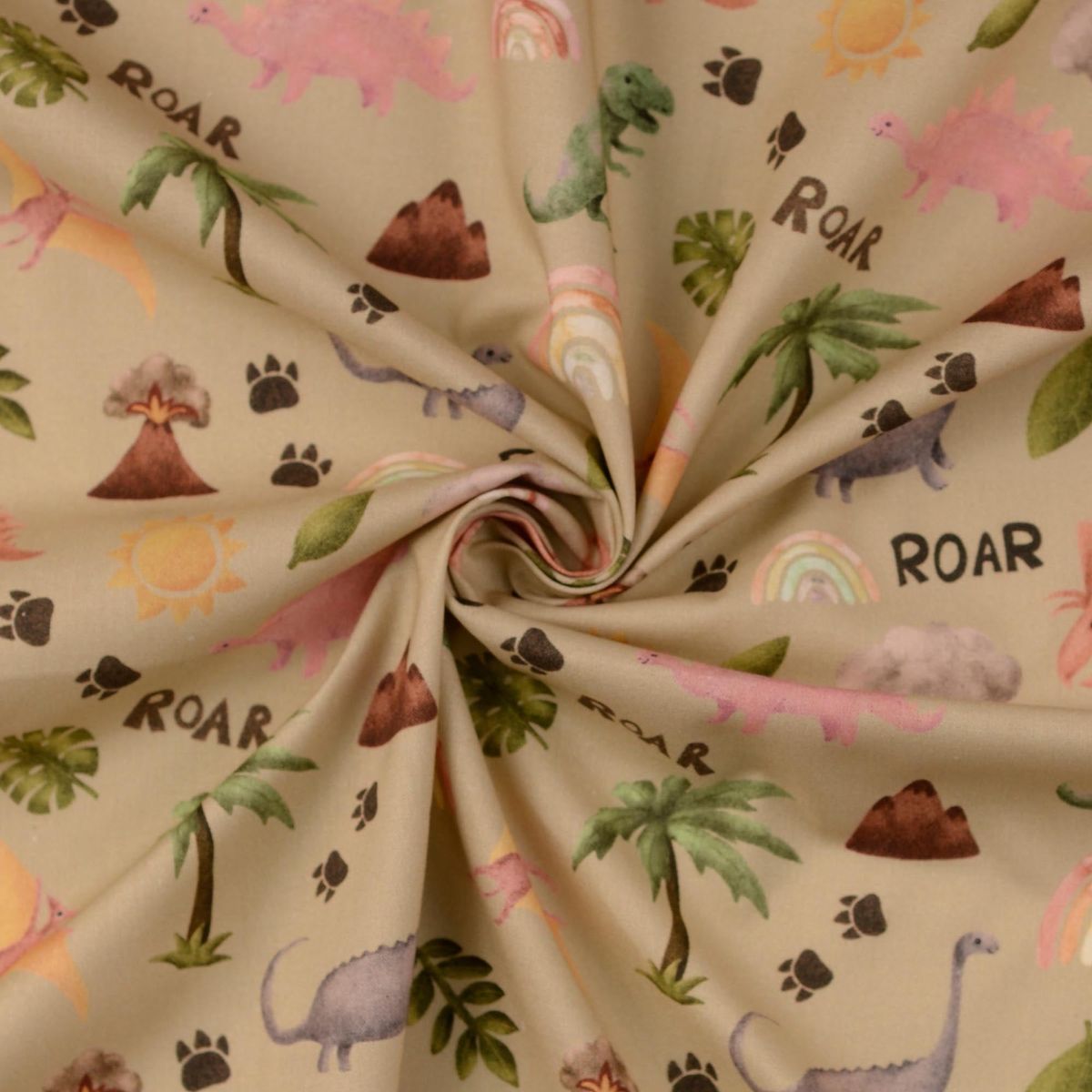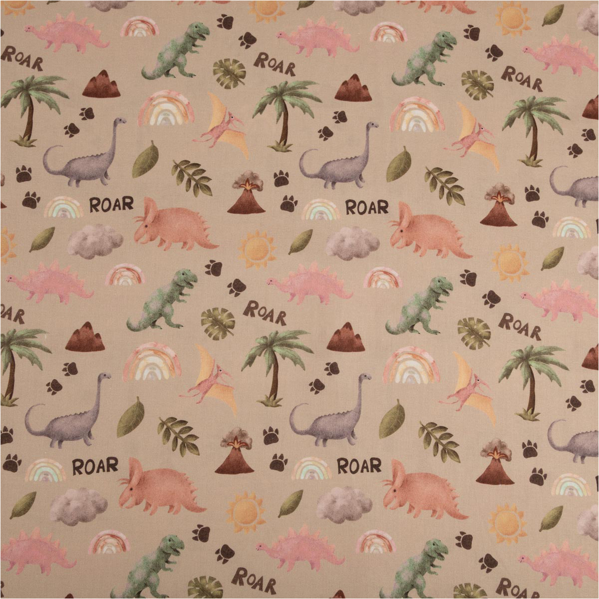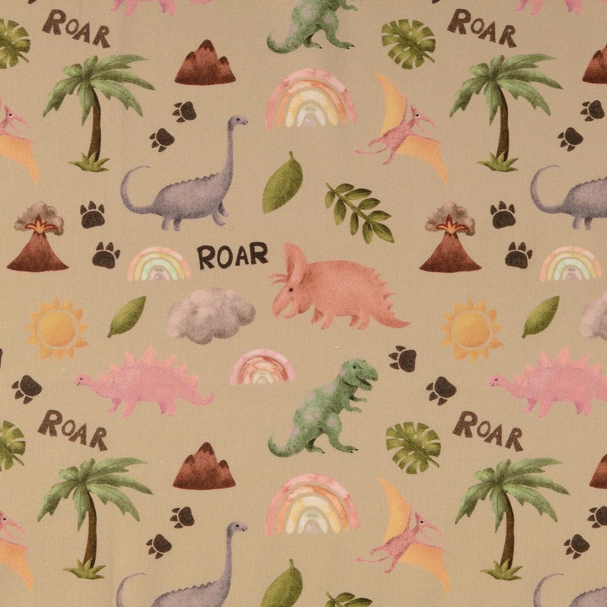 Baumwollstoff Dinosaurier Digitaldruck beige grün rosa 1,48m Breite