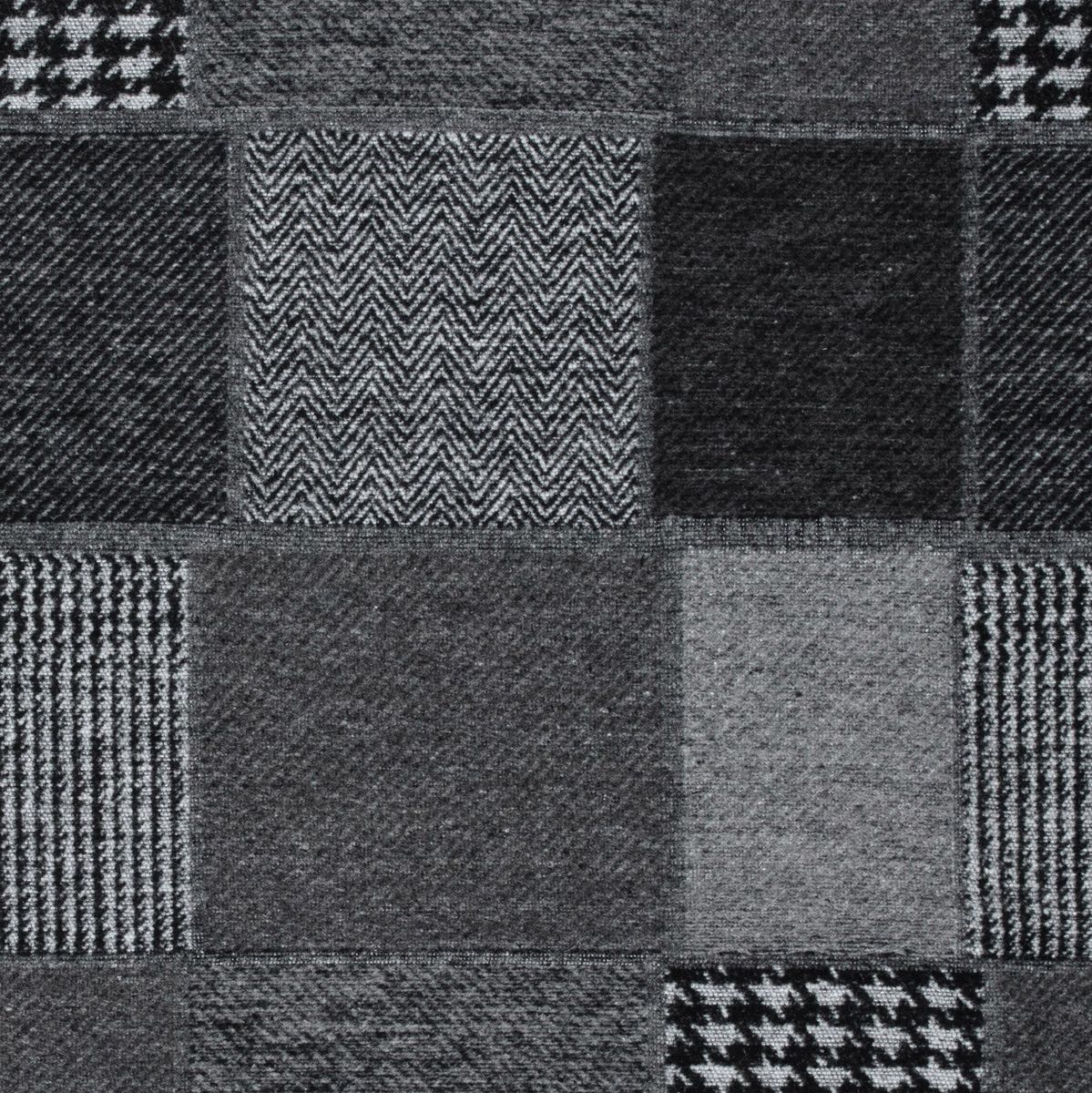 Edler Look: Jacquard-Patchwork mit Karos in Grautönen – modern, zeitlos und vielseitig kombinierbar.