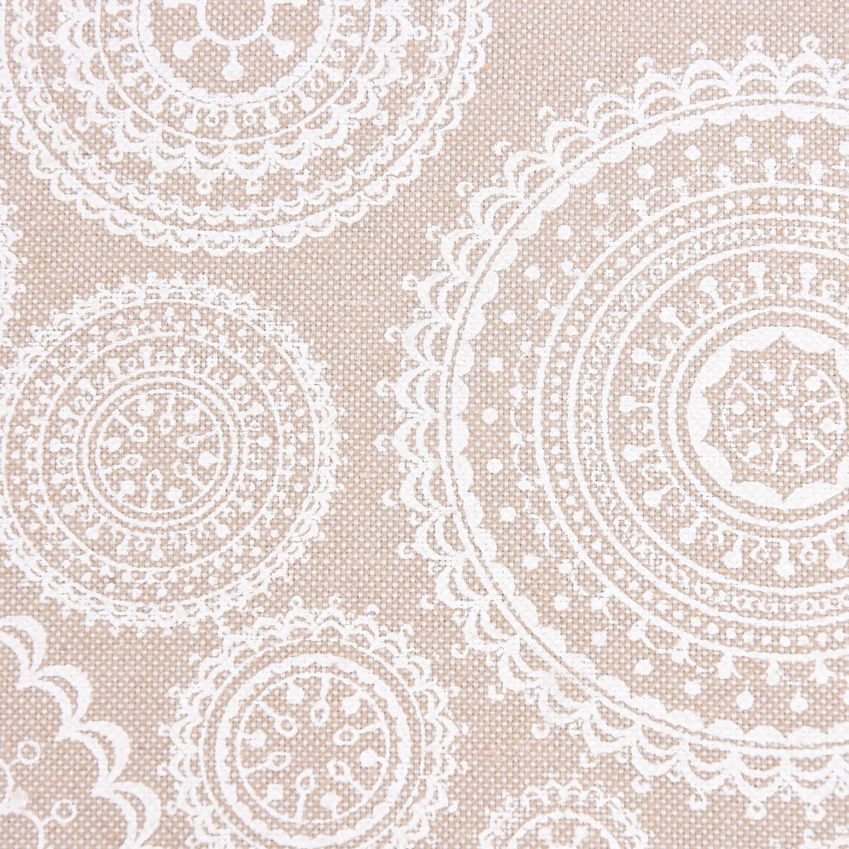 Der naturfarbige Dekostoff mit Mandalas ist ein Traumstoff, der zu vielen Wohnstilen passt und sich wunderbar kombinieren lässt.