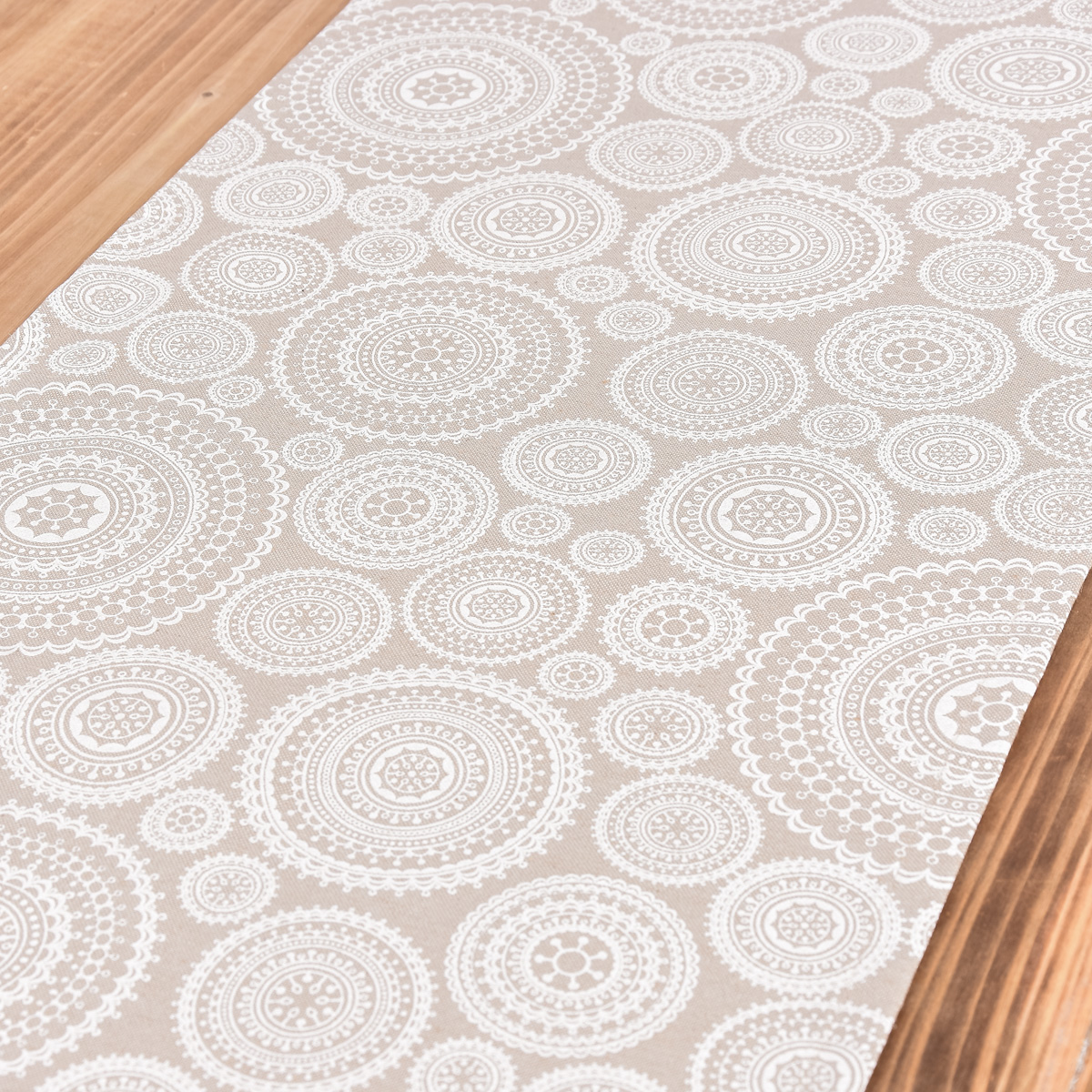 Das harmonische Mandala-Muster kommt auf dem naturfarbigen Hintergrund besonders gut zur Geltung und sorgt für eine angenehme Wohnatmosphäre.