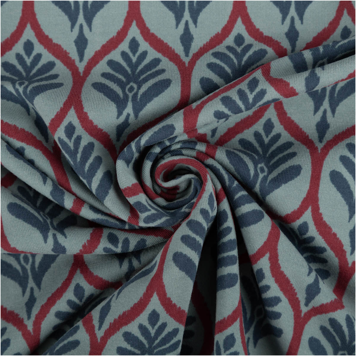 Baumwolljersey „Ornamente“ – petrolblau, 1,48 m breit (Poppy Fabrics)