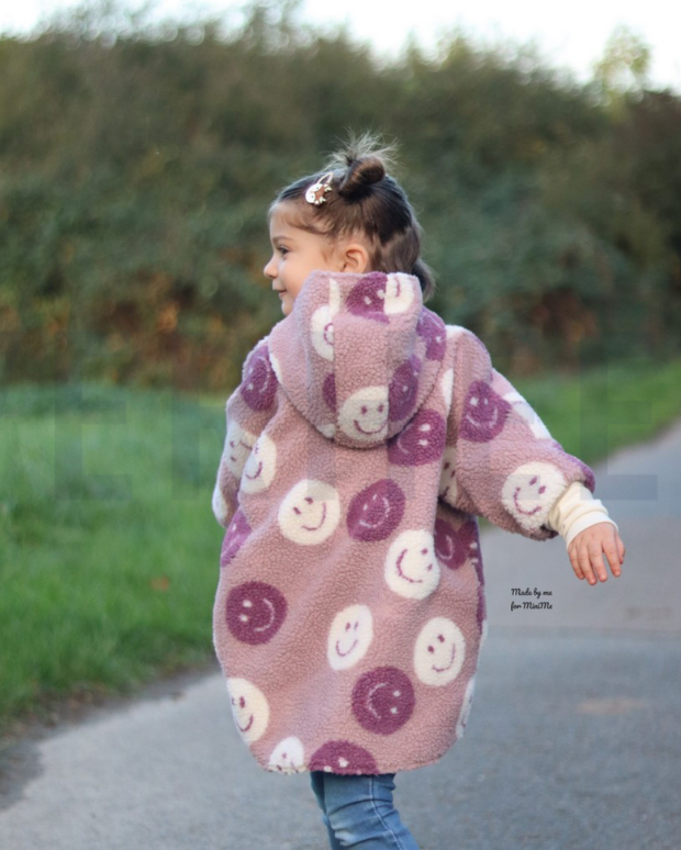 du willst maximale Gemütlichkeit? Dieser voluminöse Bouclé-Teddy mit fröhlichen „Happy Faces“ bringt Farbe, Wärme und ganz viel Kuschelfaktor in deine Projekte – von trendigen Westen bis zu flauschigen Plaids.