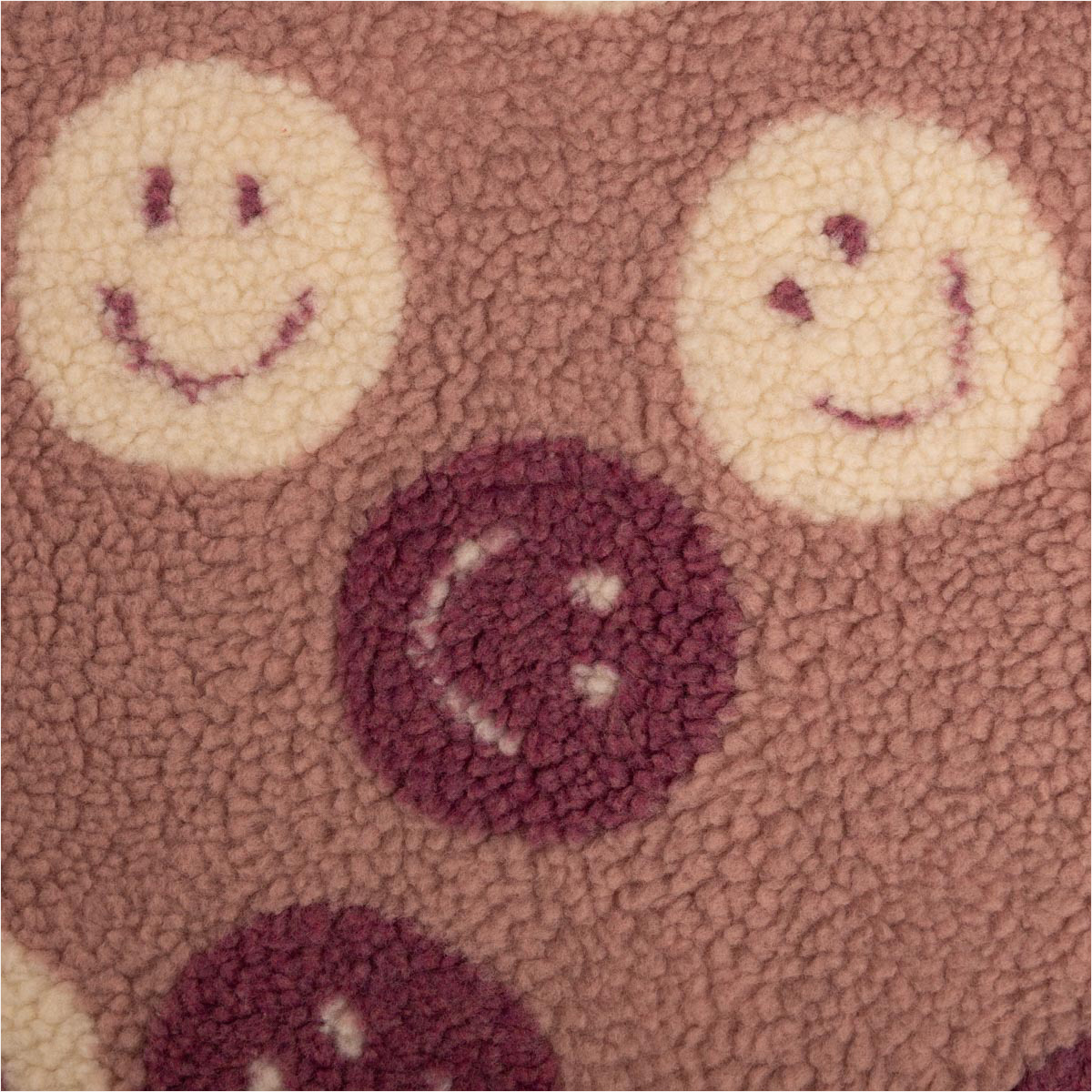 Kuschelweicher Bouclé-Teddy in Lila/Wollweiß mit „Happy Faces“-Dessin
