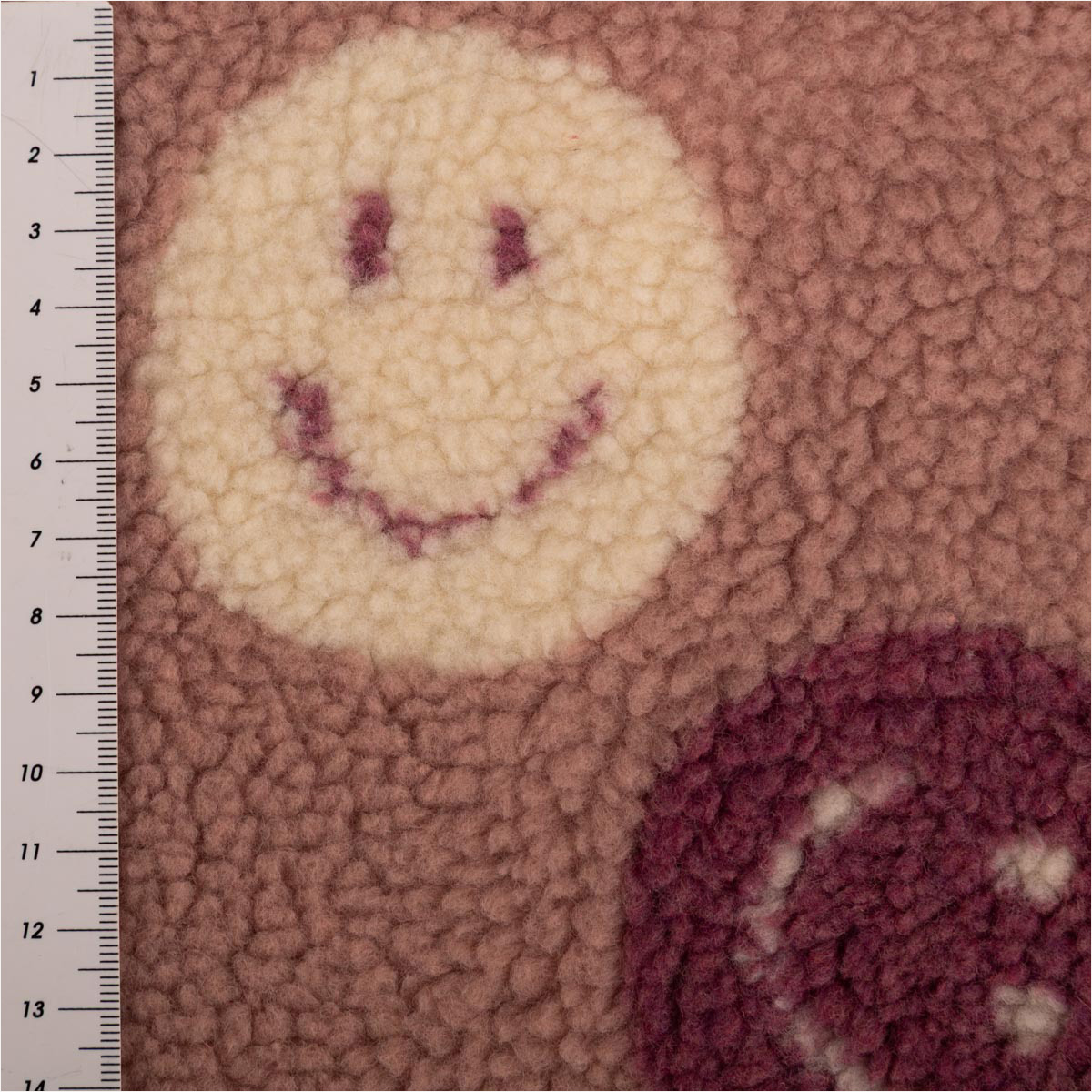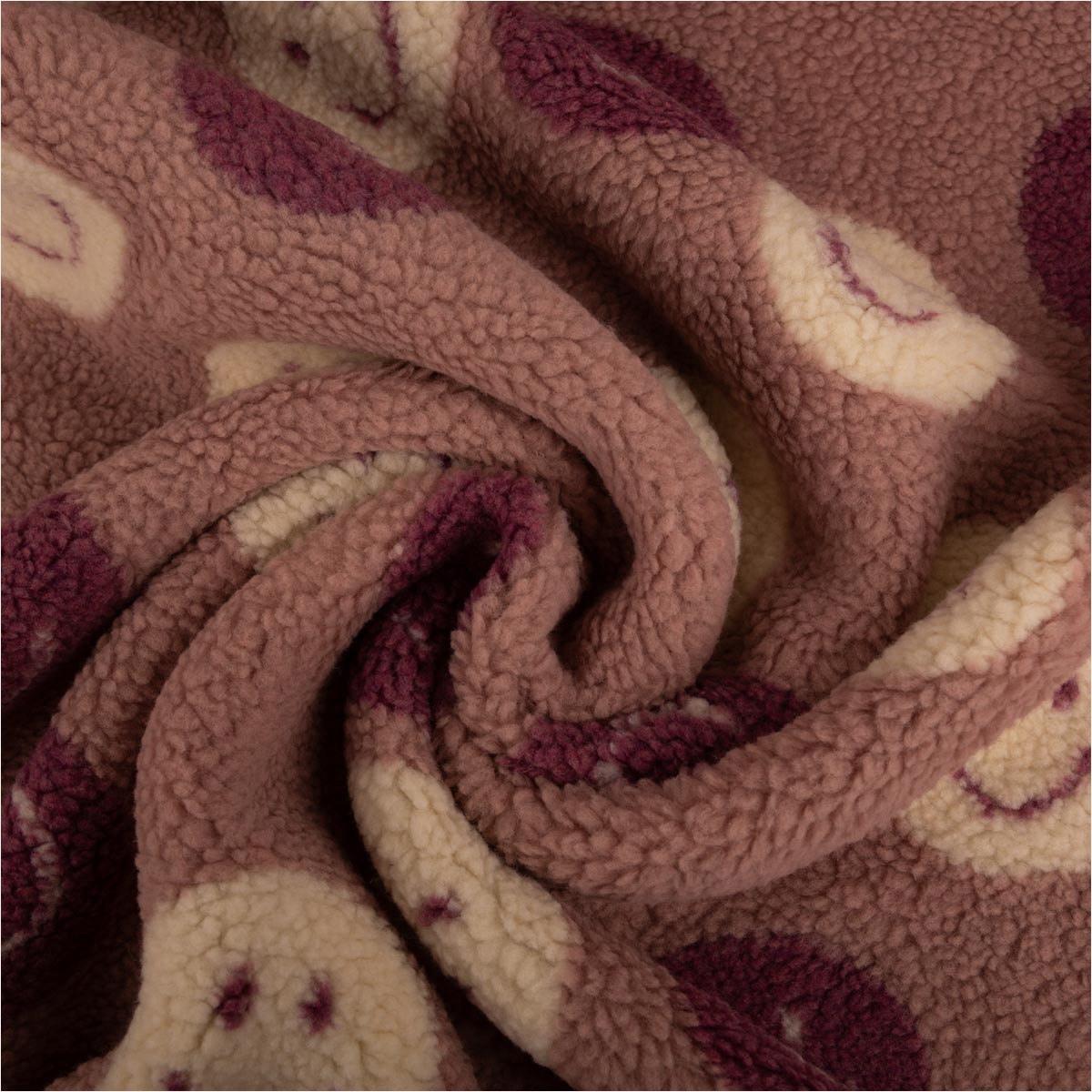Teddystoff Boucle Happy Faces lila wollweiß 160cm Breite