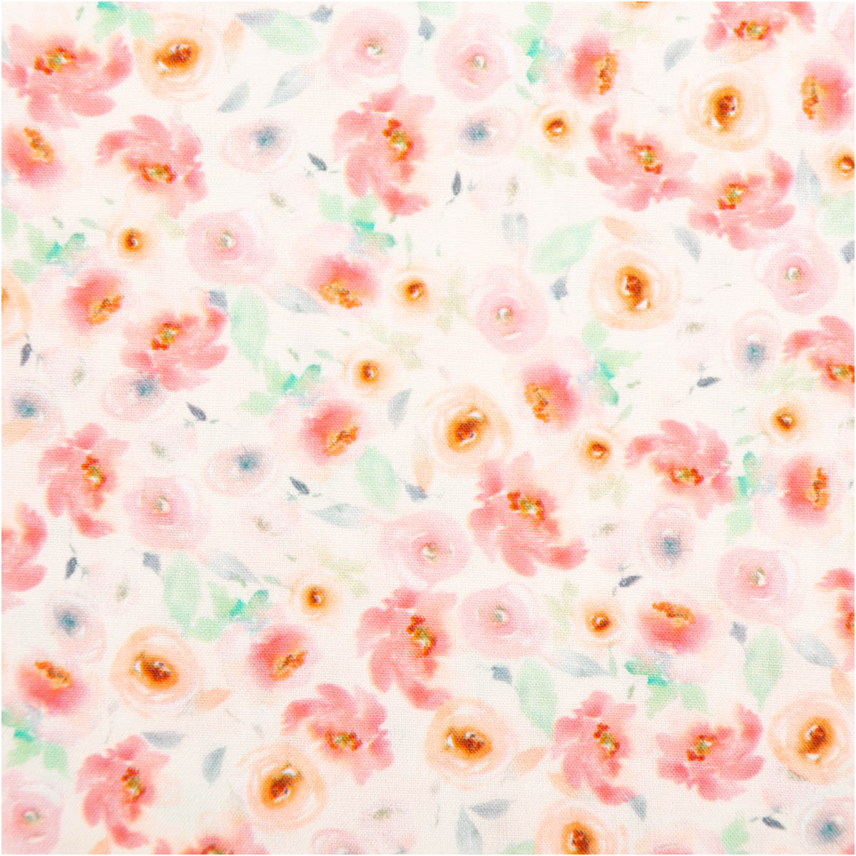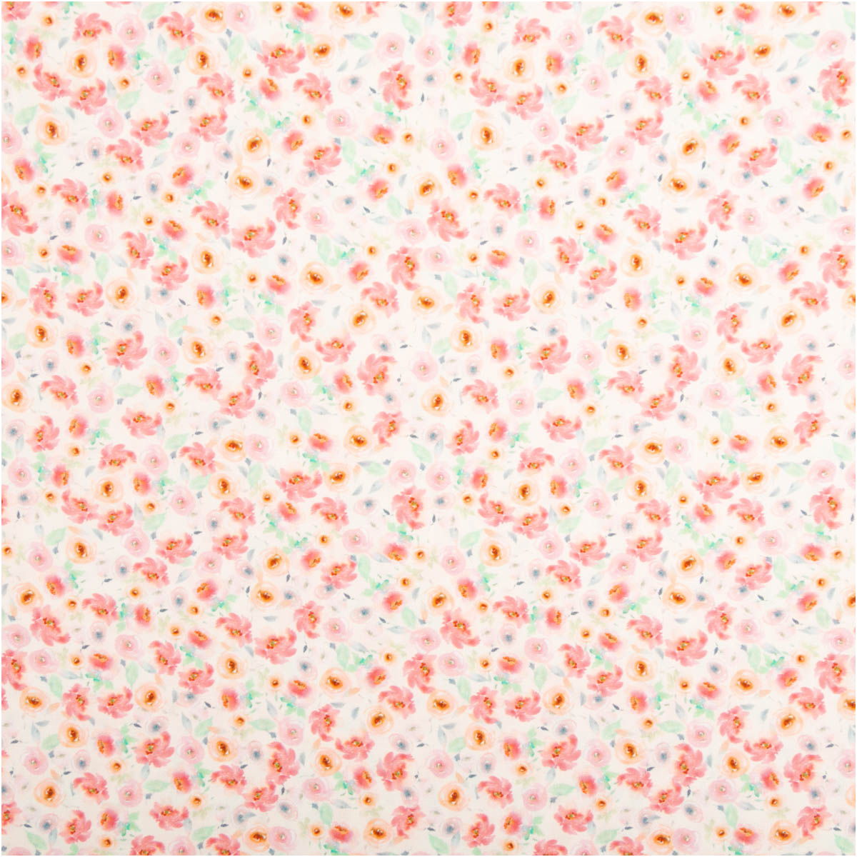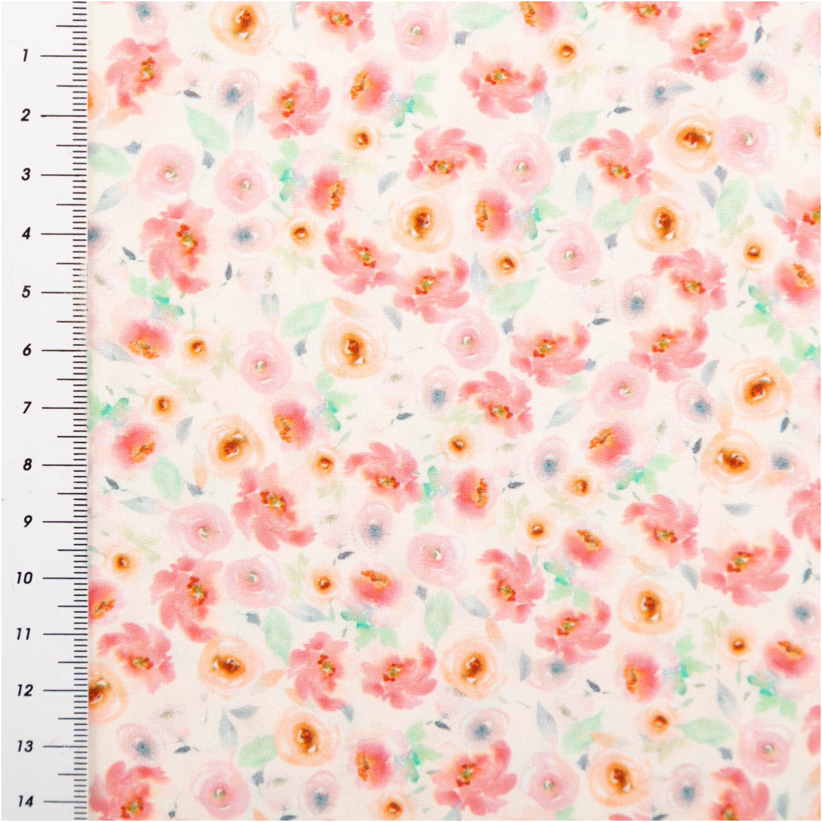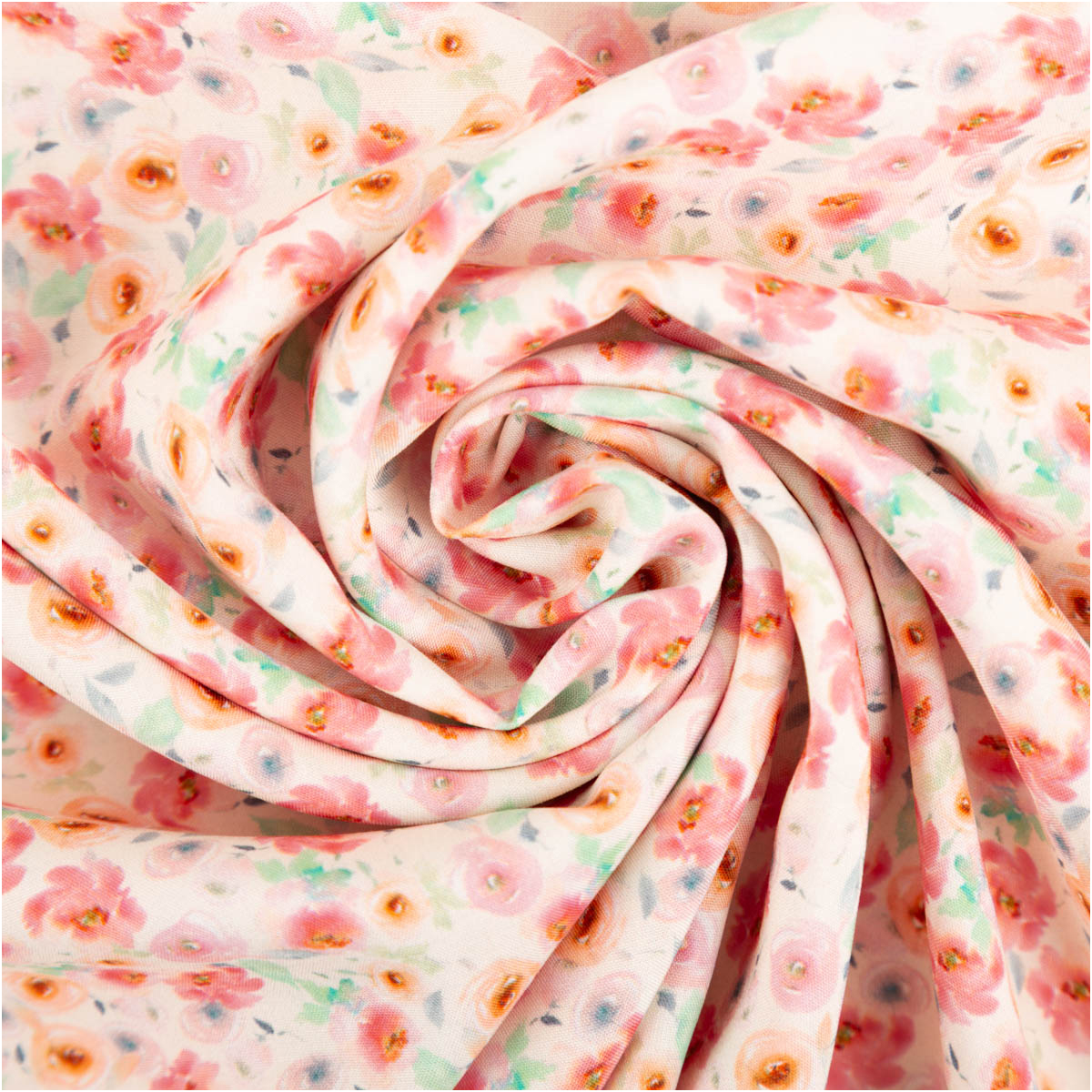 Viskose Stoff Radiance Blümchen Digitaldruck ecru rosa grün 1,40m Breite