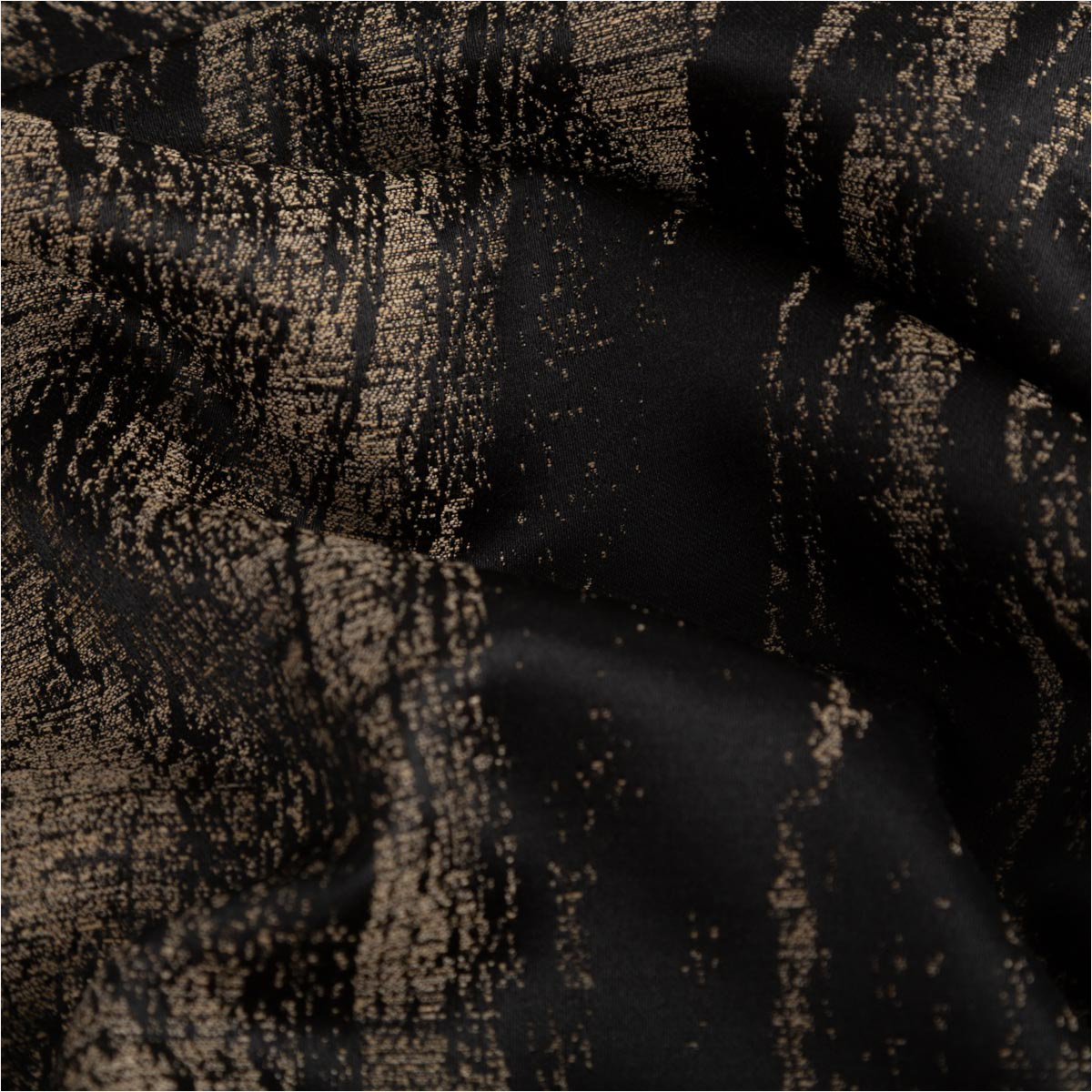 Der hochwertige Jacquard Stoff in Schwarz und Goldtönen wirkt elegant und modern zugleich und passt zu vielen modernen Einrichtungsstilen.