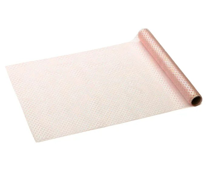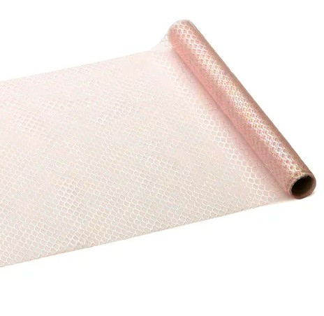 Mit dem Tischläufer Tüllband in zartem Rosa und funkelndem Schuppenmuster setzt du edle und verspielte Akzente bei jeder Dekoration. Das transparente Tüllmaterial sorgt für Leichtigkeit, während das glitzernde Schuppendessin für besondere Lichtreflexe sorgt.