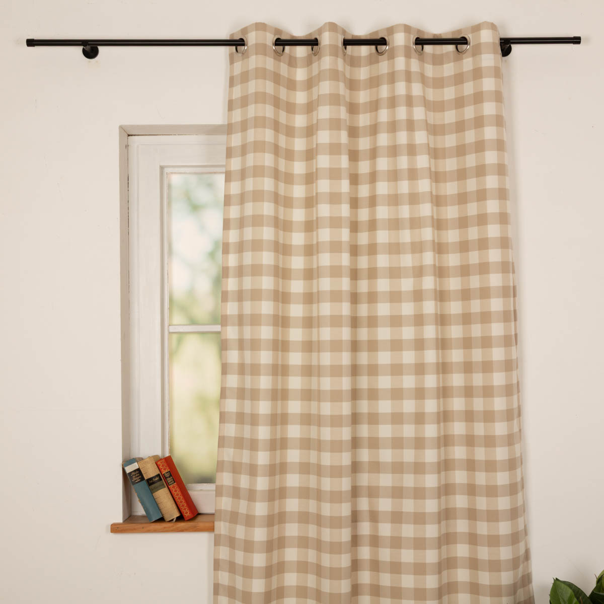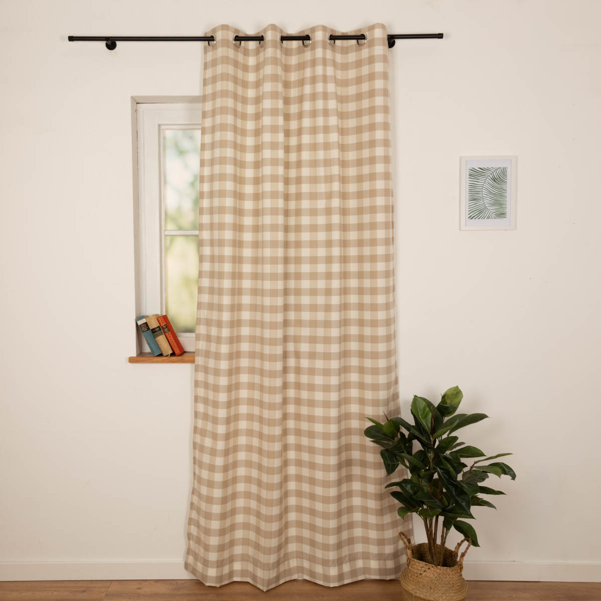 Vorhänge mit Karos in Beige und Weiß mit Ösenaufhängung von SCHÖNER LEBEN. – ein charmanter Blickfang für deine Fenster!