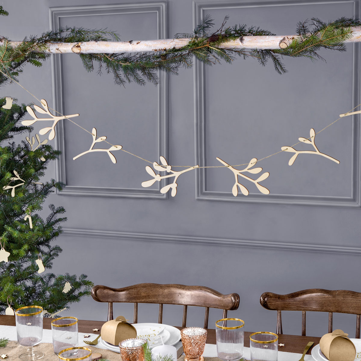 Diese dekorative Girlande mit Holz-Mistelzweigen sorgt für weihnachtliche Atmosphäre in deinem Zuhause!