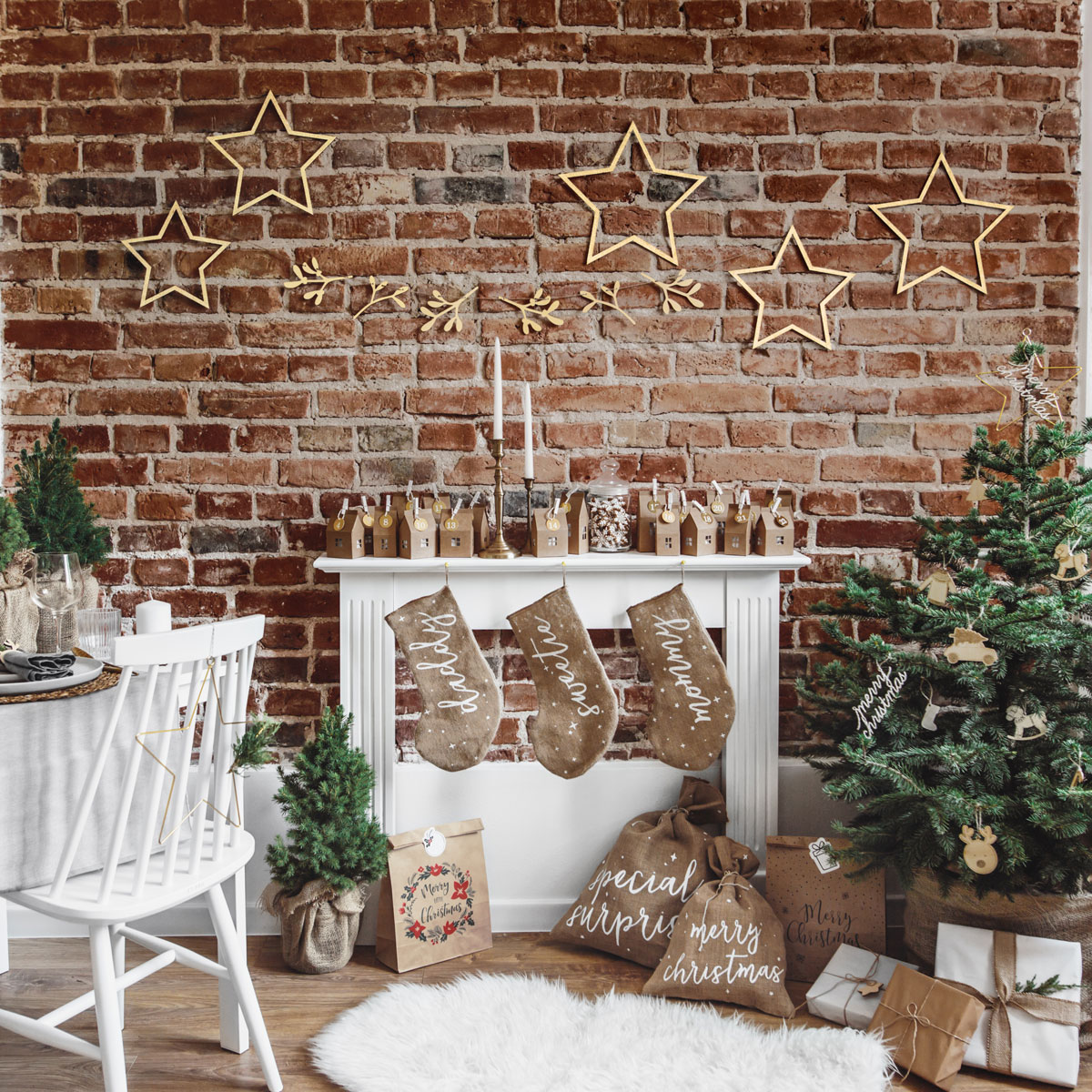 Die Girlande macht überall was her: An der Wand, von der Decke, auf dem Tisch, ums Treppengeländer, usw.