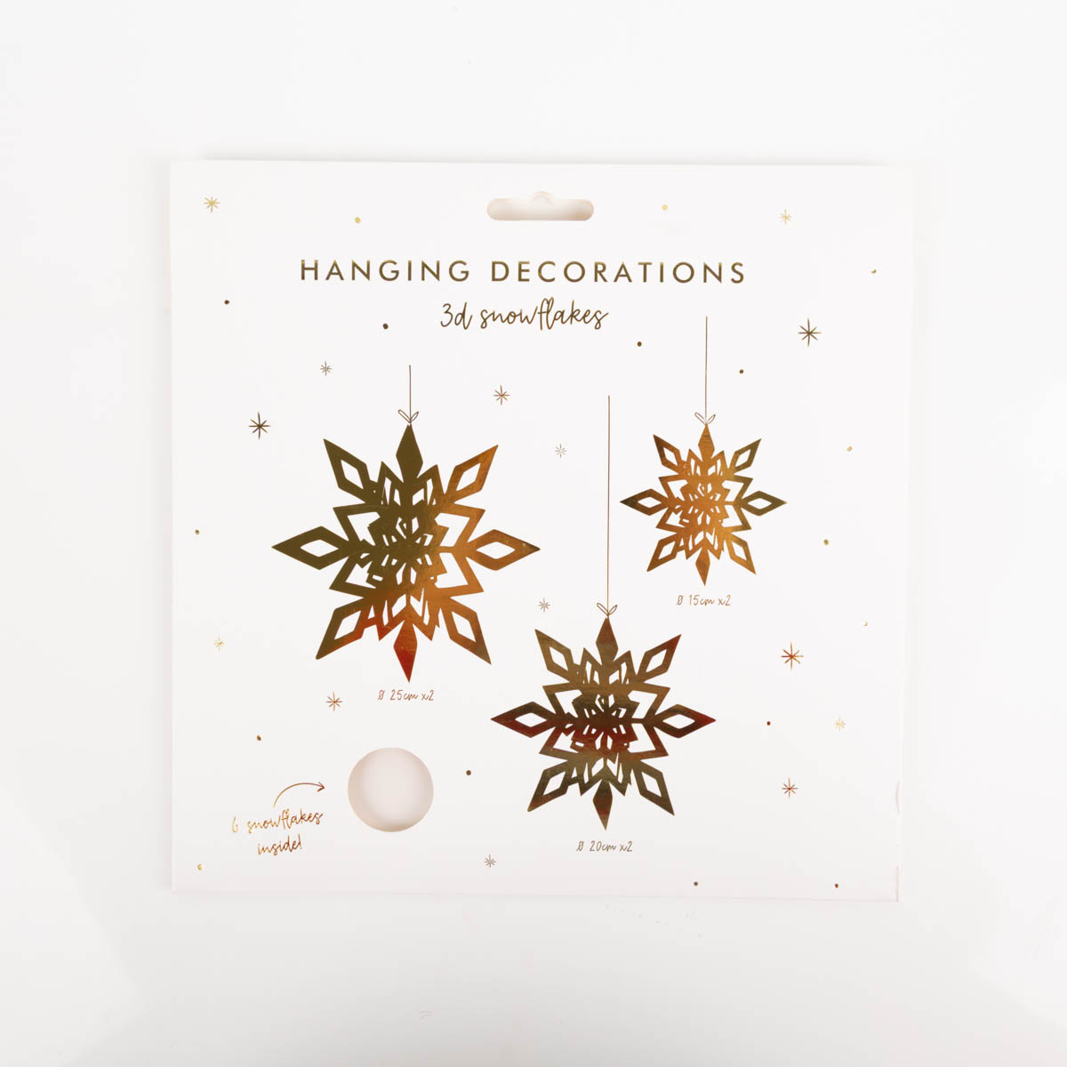 Schneeflocken Anhänger 3D Gold 6er Set – Weihnachtsdeko zum Aufhängen