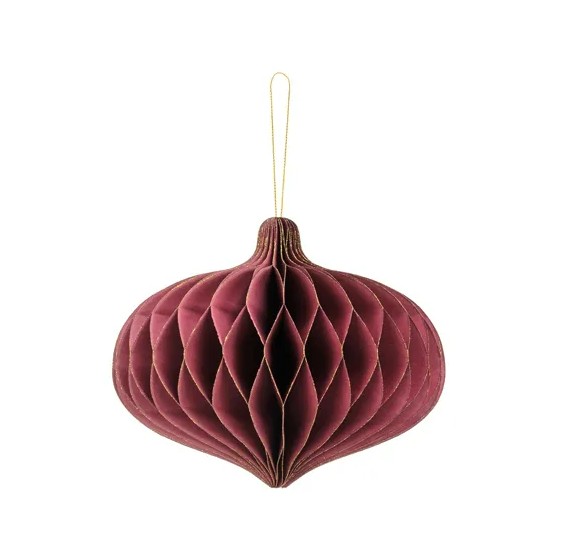 Dieser Weihnachtshänger in Honeycomb-Optik bringt festlichen Glanz in dein Zuhause. Der Papieranhänger in elegantem Weinrot mit feinem Goldrand sorgt für eine edle und warme Atmosphäre.