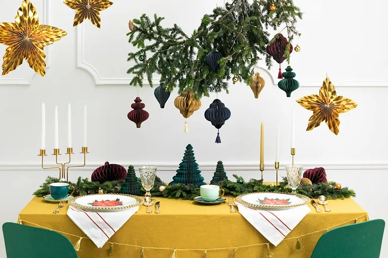 • Dekorativer Weihnachtshänger aus Papier in Honeycomb-Optik