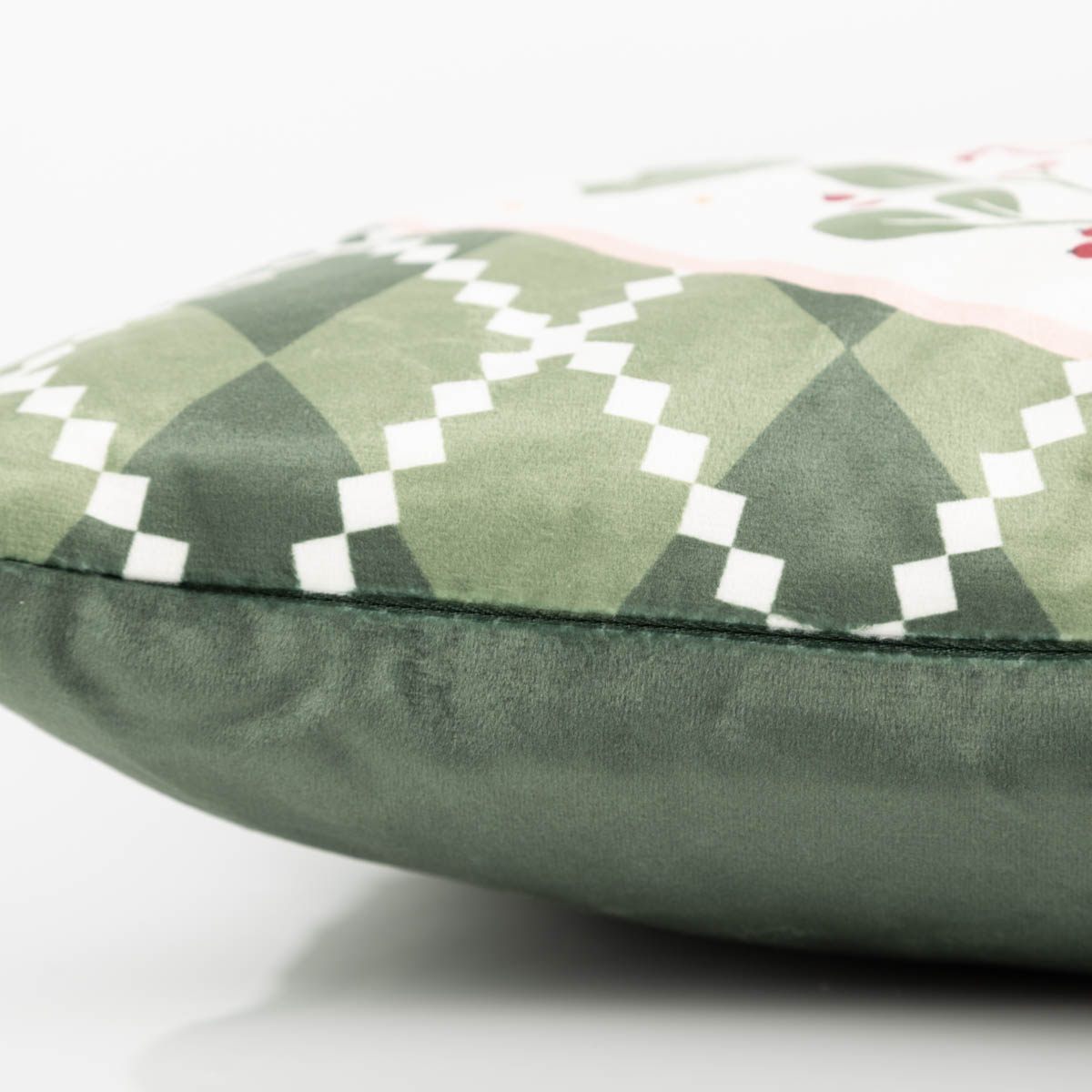 Weihnachtskissen mit klassischem Nussknacker-Print und Rautenmuster