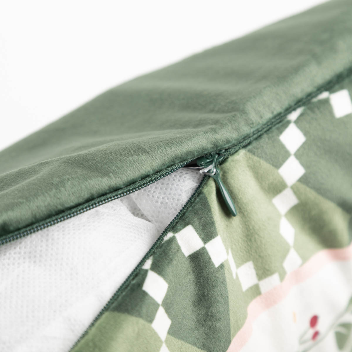 Bezug: Velour, Vorderseite mit Print, Rückseite uni grün