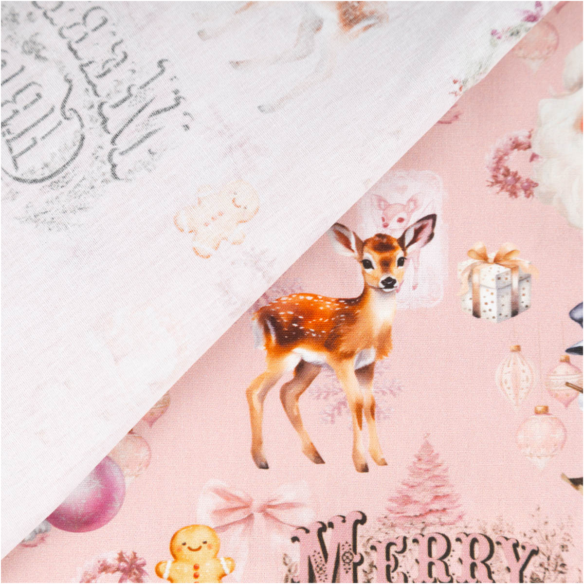 Mit diesem bezaubernden Popeline bringst du nostalgischen Weihnachtszauber in dein Zuhause! Der feine Baumwollstoff mit glatter Oberfläche zeigt liebevoll gestaltete Motive wie Weihnachtsmann, Reh, Schneemann und festliche Kränze – auf zartem Rosaton, der wunderbar harmonisch wirkt.