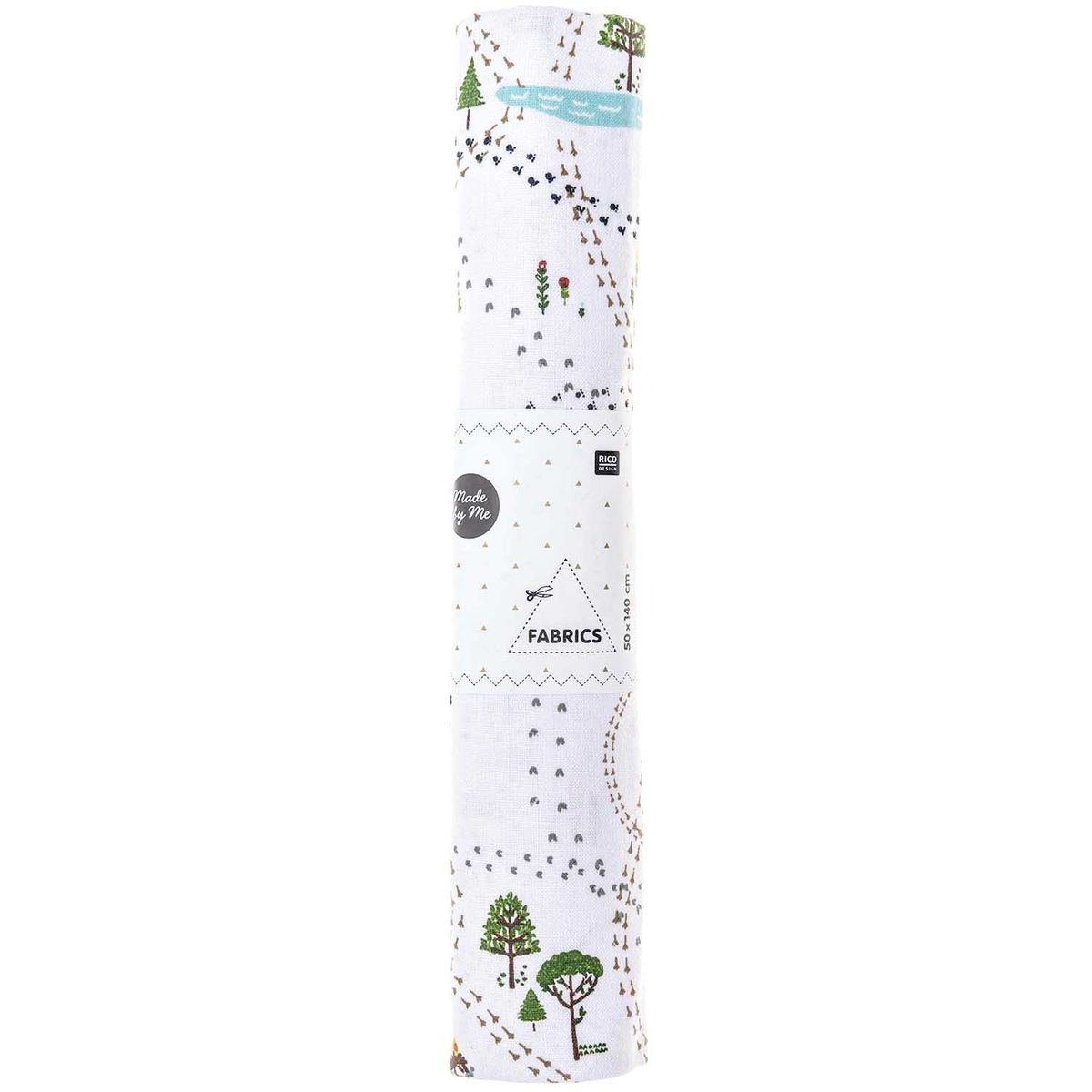 Baumwollstoff Spurensuche im Schnee weiß bunt von Rico Design 50x140cm
