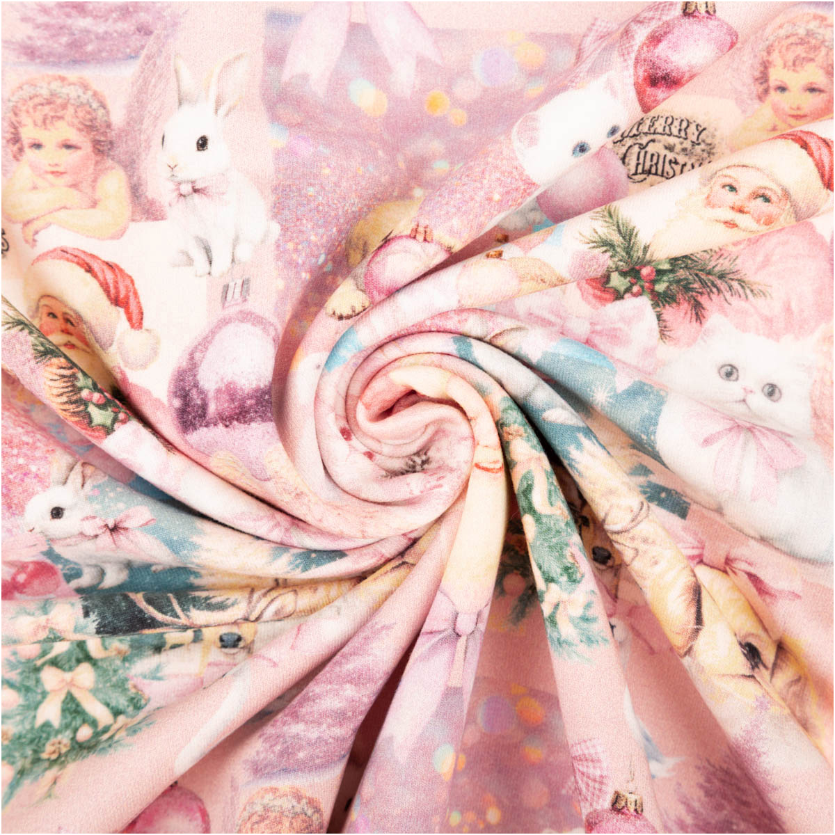 French Terry Stoff Baumwolle Weihnachtsstoff Digitaldruck Sweet Xmas rosa 1,50 m Breite