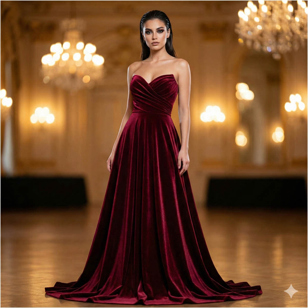 Tipp: In Kombination mit Uni-Stoffen, Spitze oder matten Materialien wirkt der Samt besonders hochwertig.