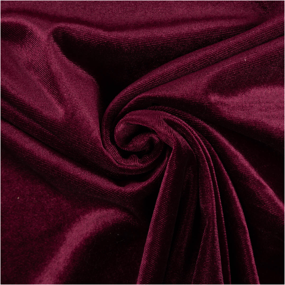 Wenn du einen Stoff suchst, der sofort luxuriös wirkt, liegst du mit diesem einfarbigen Stretchsamt in Dunkelrot genau richtig. Die weiche Oberfläche schimmert je nach Lichteinfall elegant – perfekt für Outfits, Accessoires und stilvolle Deko mit Glamour-Faktor.