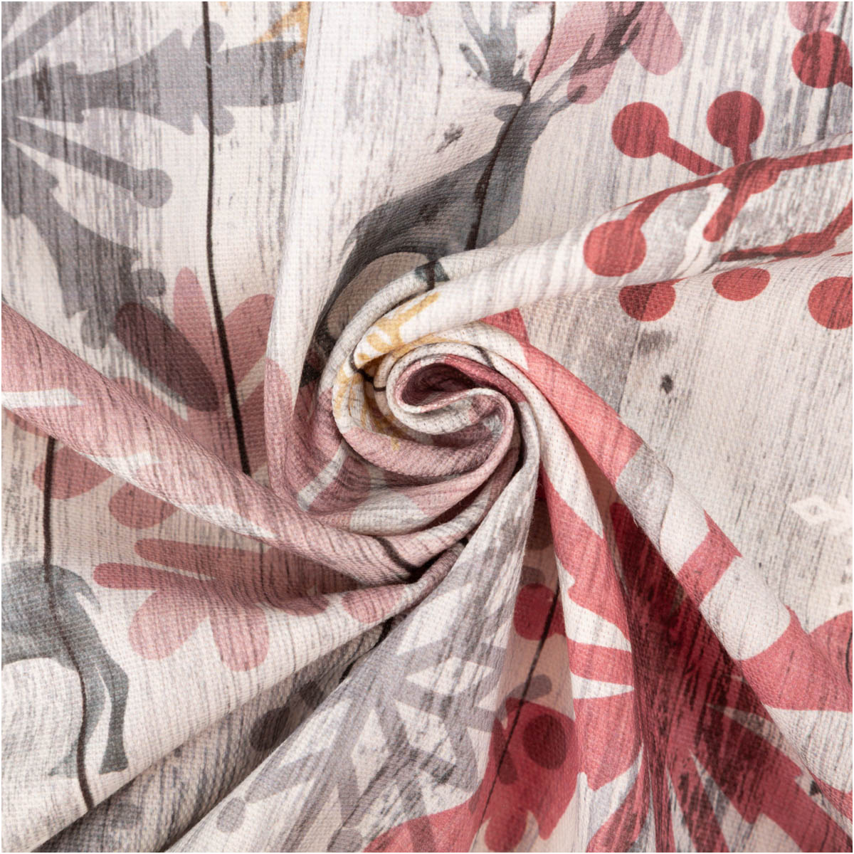 Dieser hochwertige Baumwollstoff Halbpanama mit Digitaldruck bringt winterliche Gemütlichkeit in dein Zuhause! Das Design mit Hirschen, Schneekristallen und Holzlattenoptik in Grau-Rot verleiht jedem Raum eine festliche Landhaus-Atmosphäre.