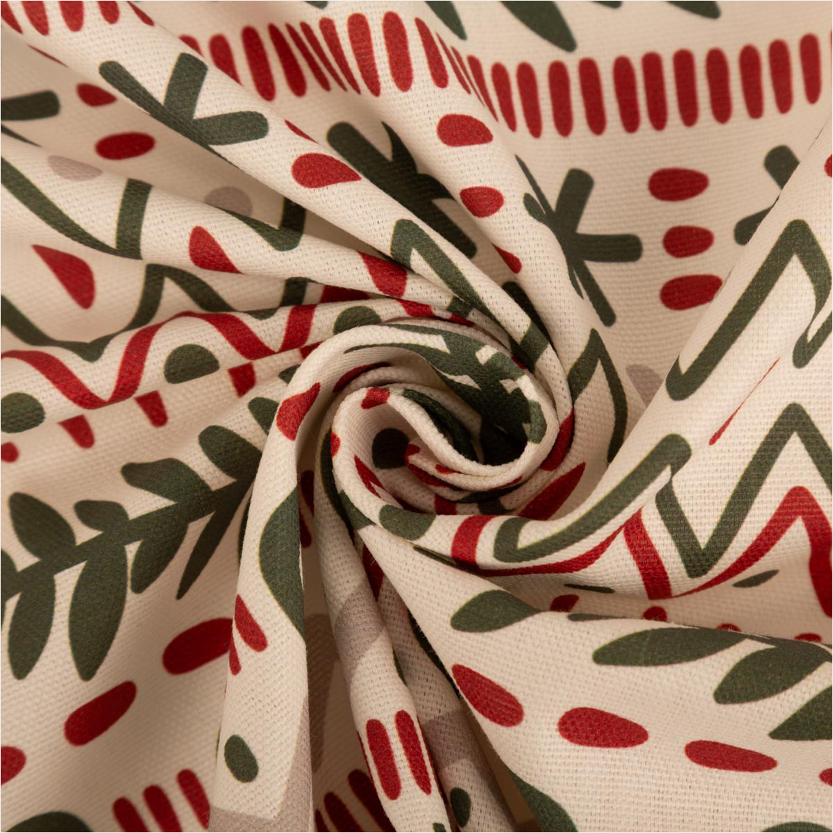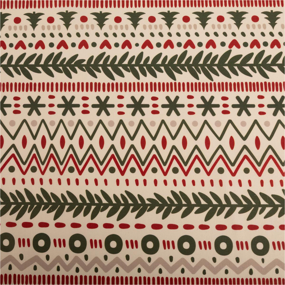 Dieser hochwertige Baumwollstoff mit modernem Zickzack-Muster in Weiß, Rot und Grün bringt nordische Weihnachtsstimmung in dein Zuhause. Die griffige Halbpanama-Qualität sorgt für Stabilität, während der feine Digitaldruck das geometrische Design brillant zur Geltung bringt.