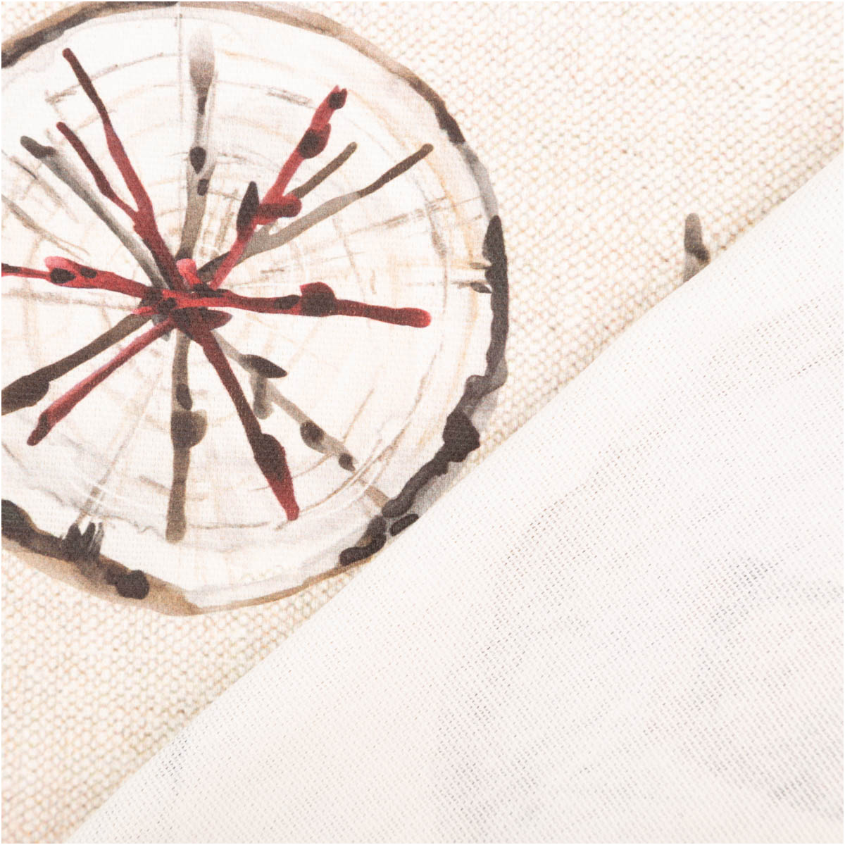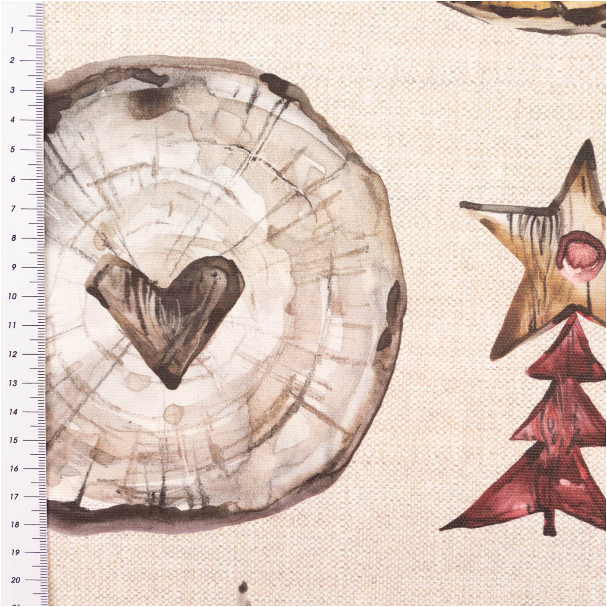Unser Baumwollstoff Halbpanama Wooden Christmas bringt natürliche Gemütlichkeit und festliche Wärme in dein Zuhause. Das außergewöhnliche Holzscheiben-Design mit Elchen, Sternen, Herzen und Tannenbäumen verleiht deiner Weihnachtsdeko einen rustikalen, modernen Landhaus-Charme.