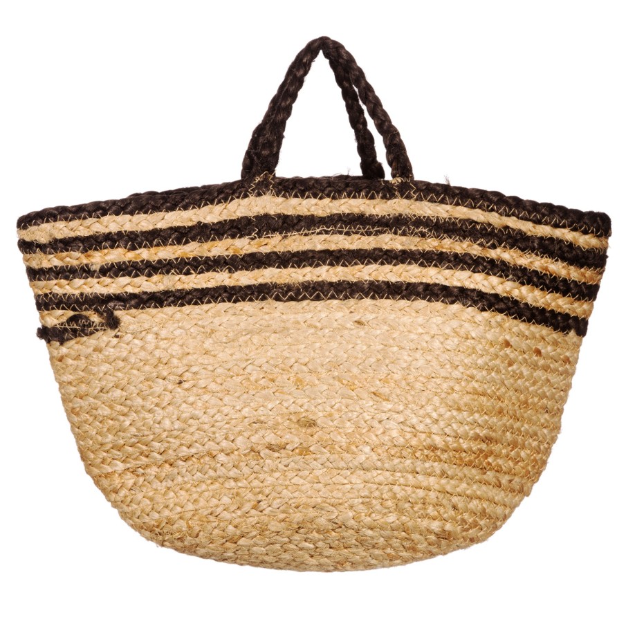 Handgeflochtener Seegras-Korb in natur mit schwarzen Streifen