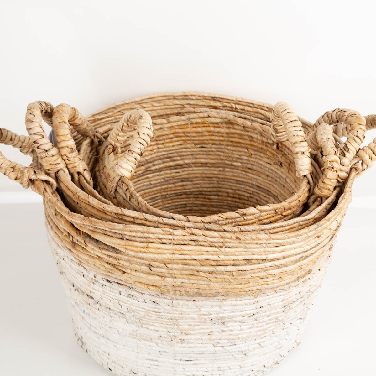 Korbset XL Bananenbaumrinde 4 teilig natur weiß von Werner Voss