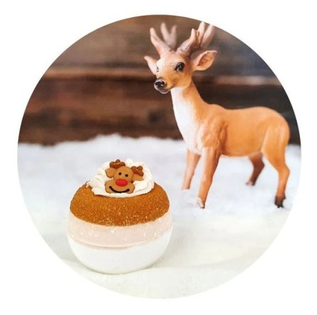 Handgemachte Badebombe mit Rentier-Deko & goldenem Glitzer