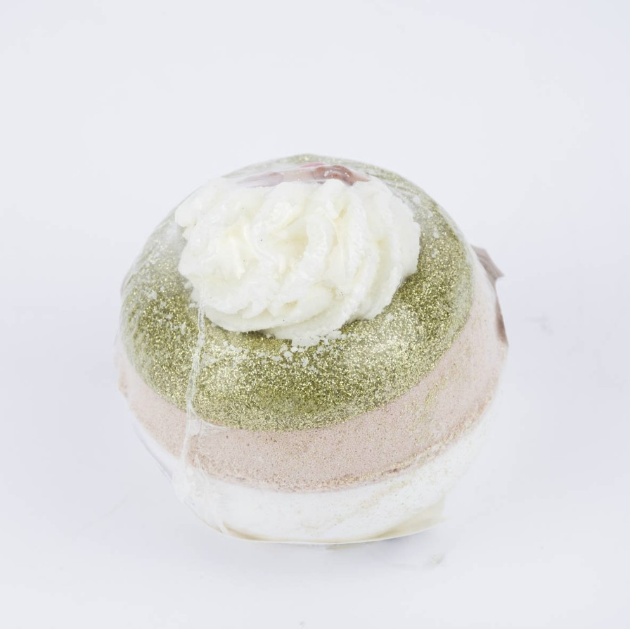 Die Badebombe ins warme Badewasser geben, zurücklehnen und genießen, wie sie sich sprudelnd auflöst. Für samtweiche Haut und weihnachtliche Wohlfühlmomente.