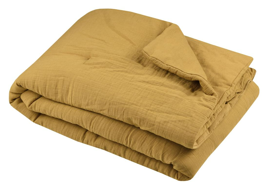 Große Musselindecke aus Baumwolle gefüttert einfarbig senfgelb 180x220cm