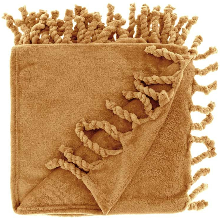 Kuscheldecke mit gedrehten Fransen Ocker 140x160cm