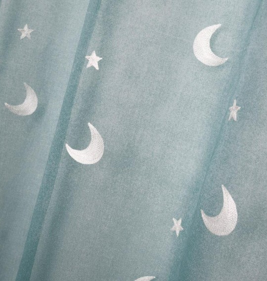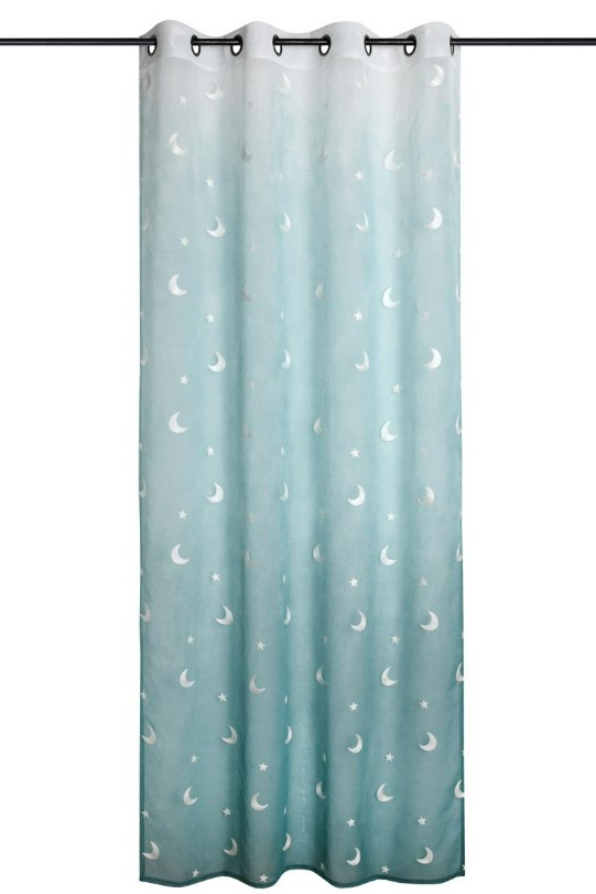 Ösenvorhang Voile mit Stickerei Sterne und Monde Farbverlauf blau 140x260 cm