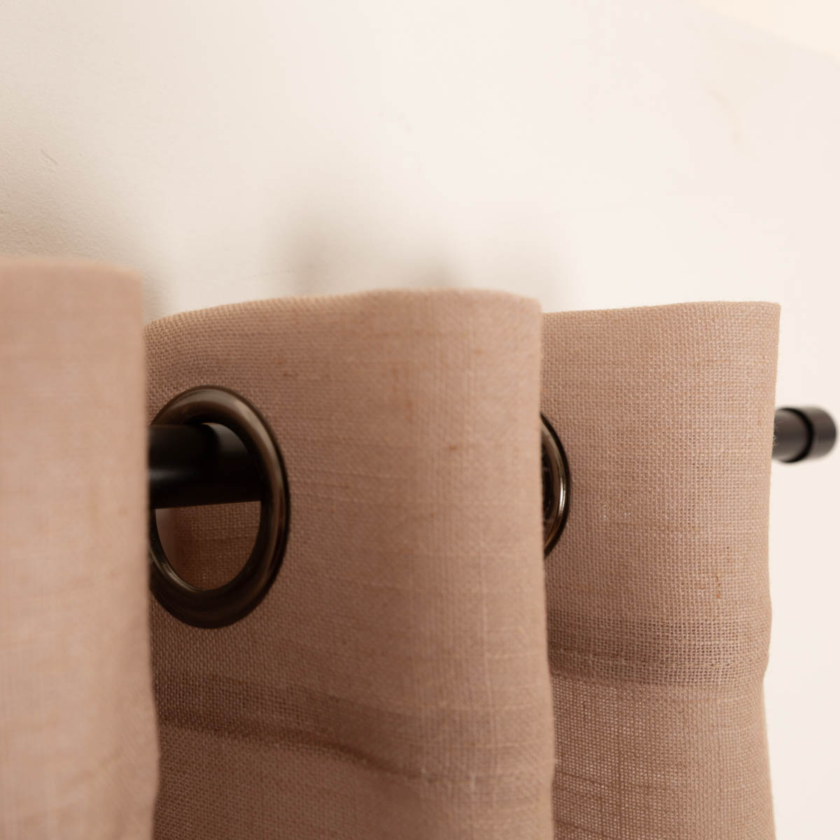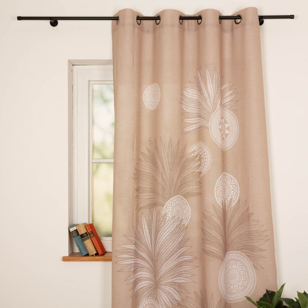 Ösenvorhang mit Leinenstruktur und Palmenblatt-Ornamenten – natürlich und dekorativ