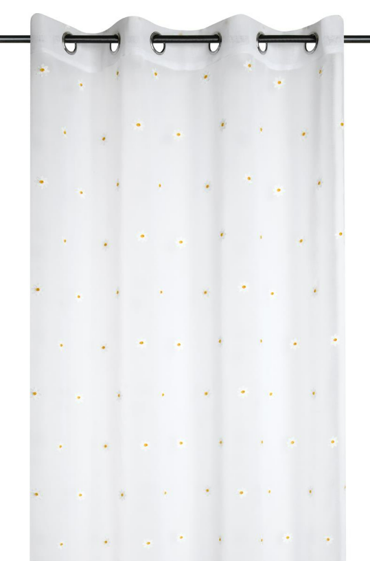 Transparenter Ösenvorhang mit Blütenstickerei in Weiß und Gelb