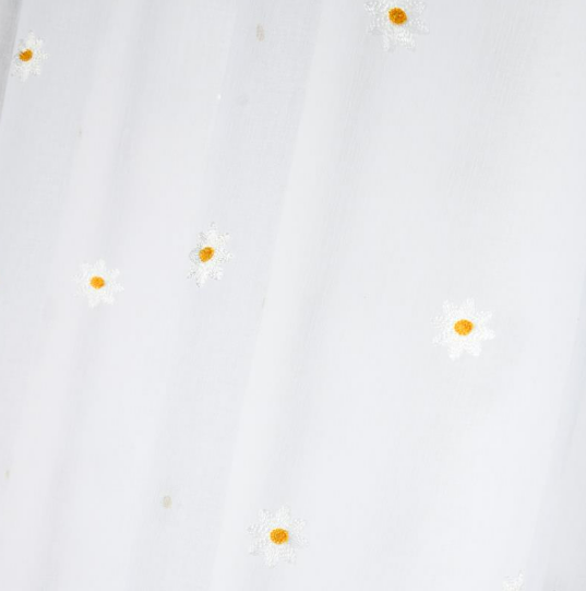 Die weiße Grundfarbe sorgt für Helligkeit und lässt sich vielseitig kombinieren. Die gelbe Blütenstickerei bringt Wärme und einen frischen Farbakzent ins Spiel. Gerade in hell eingerichteten Räumen oder in Kombination mit natürlichen, freundlichen Wohnfarben kommt dieser Vorhang besonders schön zur Geltung.