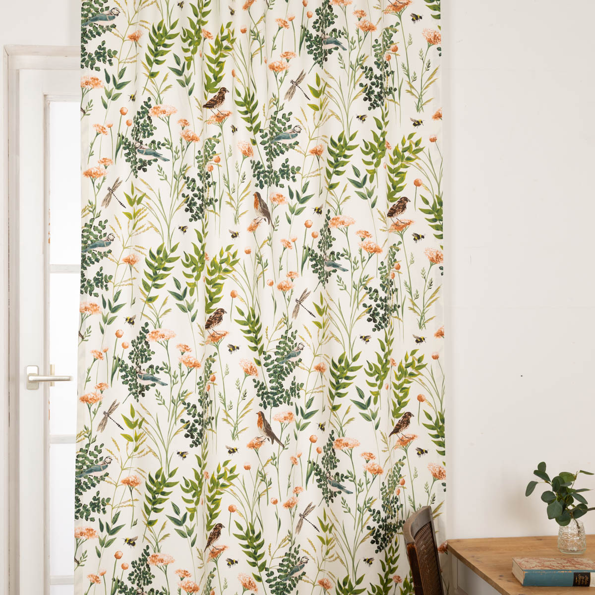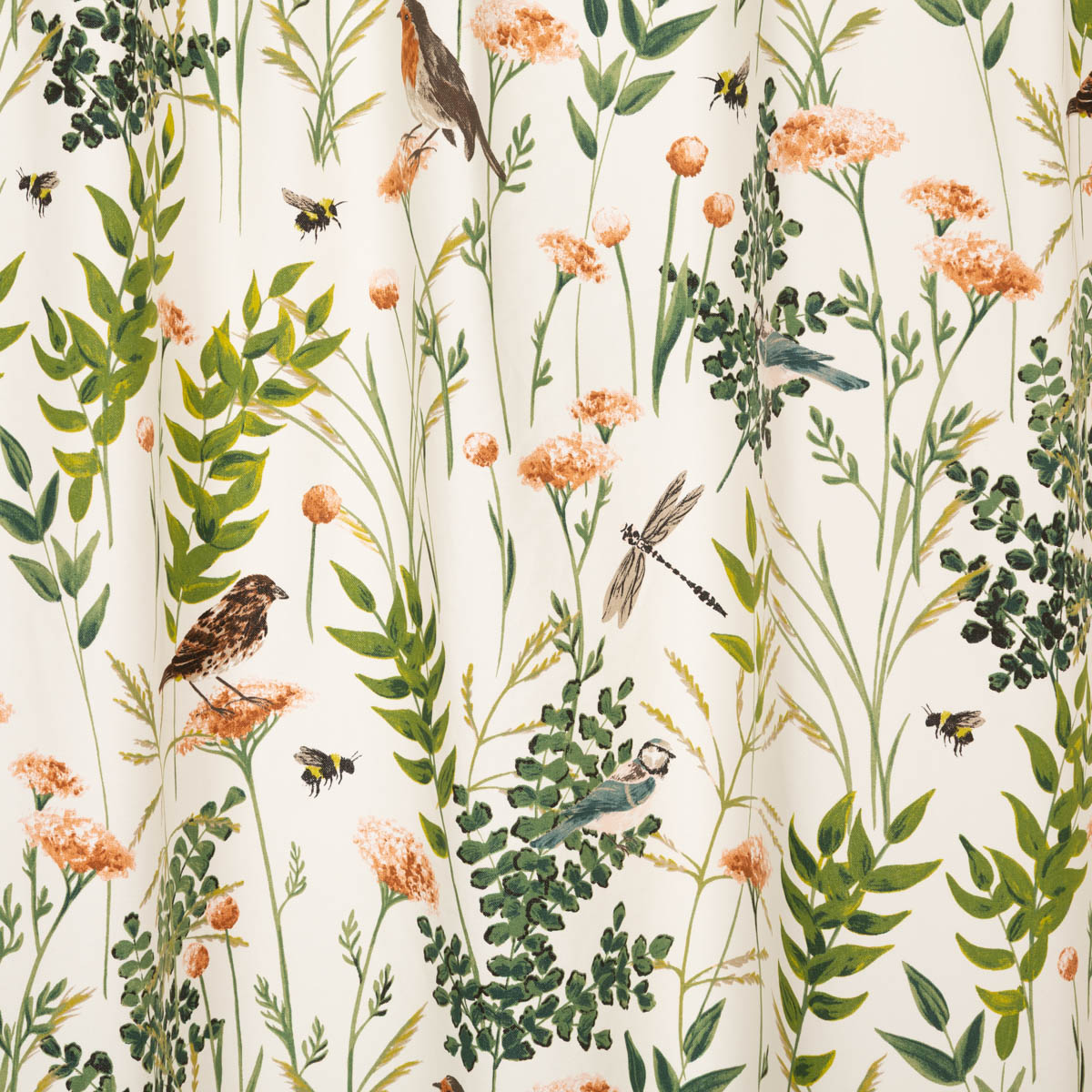 Auf dem hellen Untergrund kommen die liebevoll und detailreich gezeichneten Vögel, Insekten, Gräser und Blumen dank Digitaldruck wunderschön zur Geltung.