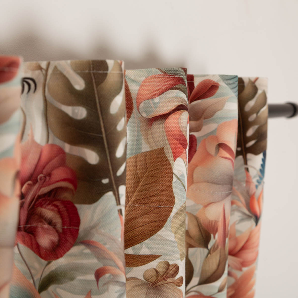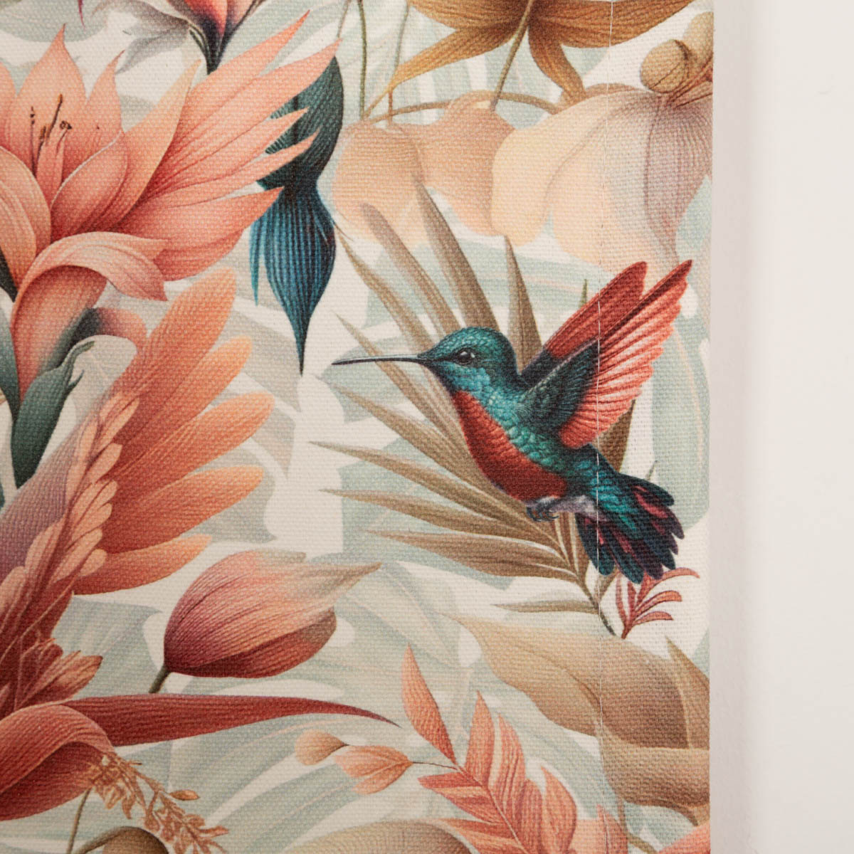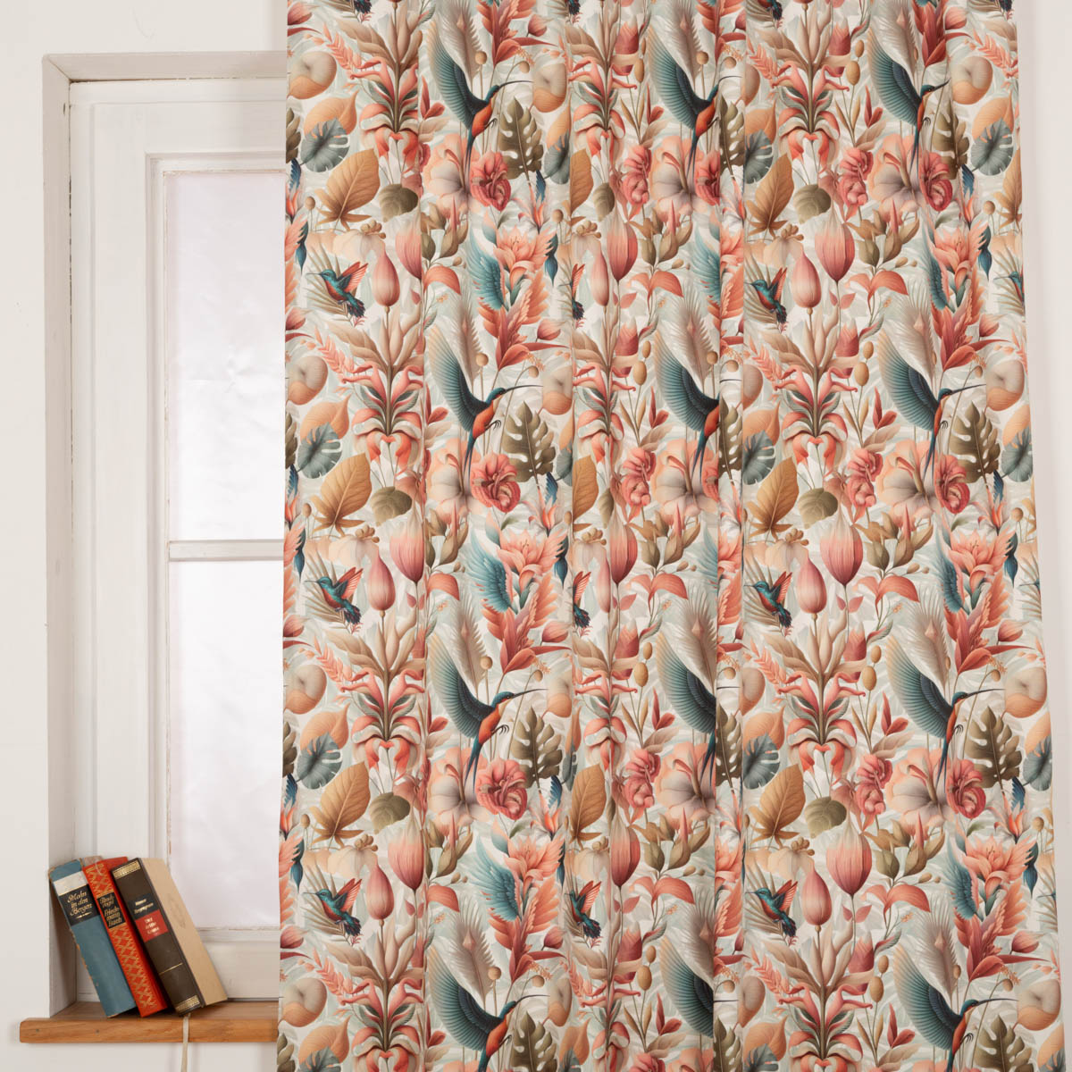 Hochwertiger Baumwollvorhang mit Kolibris, Blumen und exotischen Blättenr aus der SCHÖNER KOLLEKTION