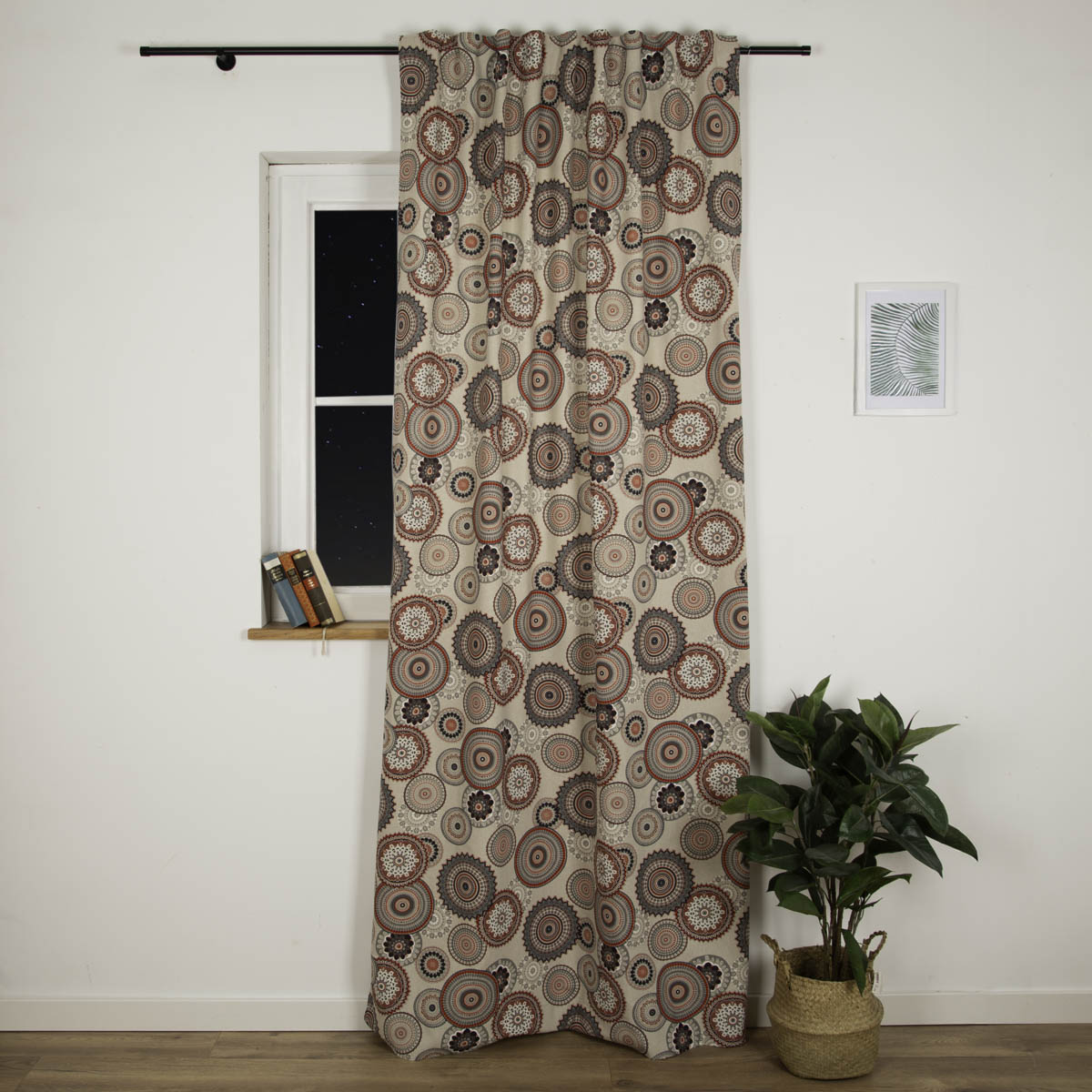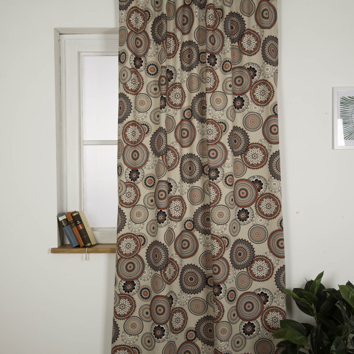 Blickdichter Vorhang im Leinenlook mit Mandala-Design in natur/rot/schwarz für mehr Privatsphäre und eine gemütliche Wohnatmosphäre