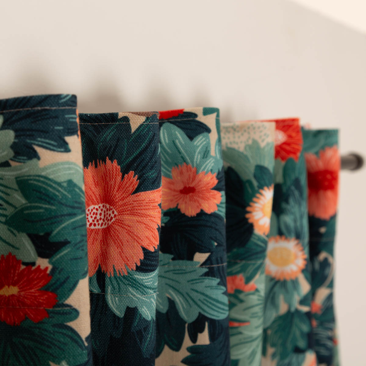 Der Vorhang ist im Standardmaß von ca. 245 × 130 cm (H × B) erhältlich. Zusätzlich fertigen wir ihn gerne individuell nach deinen Maßen an. Kürzere Längen sind ohne Aufpreis möglich. Passend dazu erhältst du den Stoff auch als Meterware sowie abgestimmte Kissen oder Tischwäsche im gleichen Dessin.