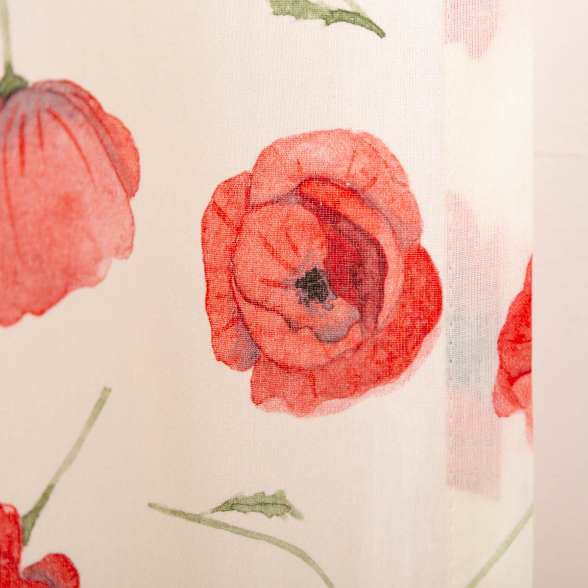 Hochwertiger Baumwollvorhang mit roten Mohnblumen in Aquarell-Optik auf pastellzartem Vanille aus der SCHÖNER KOLLEKTION