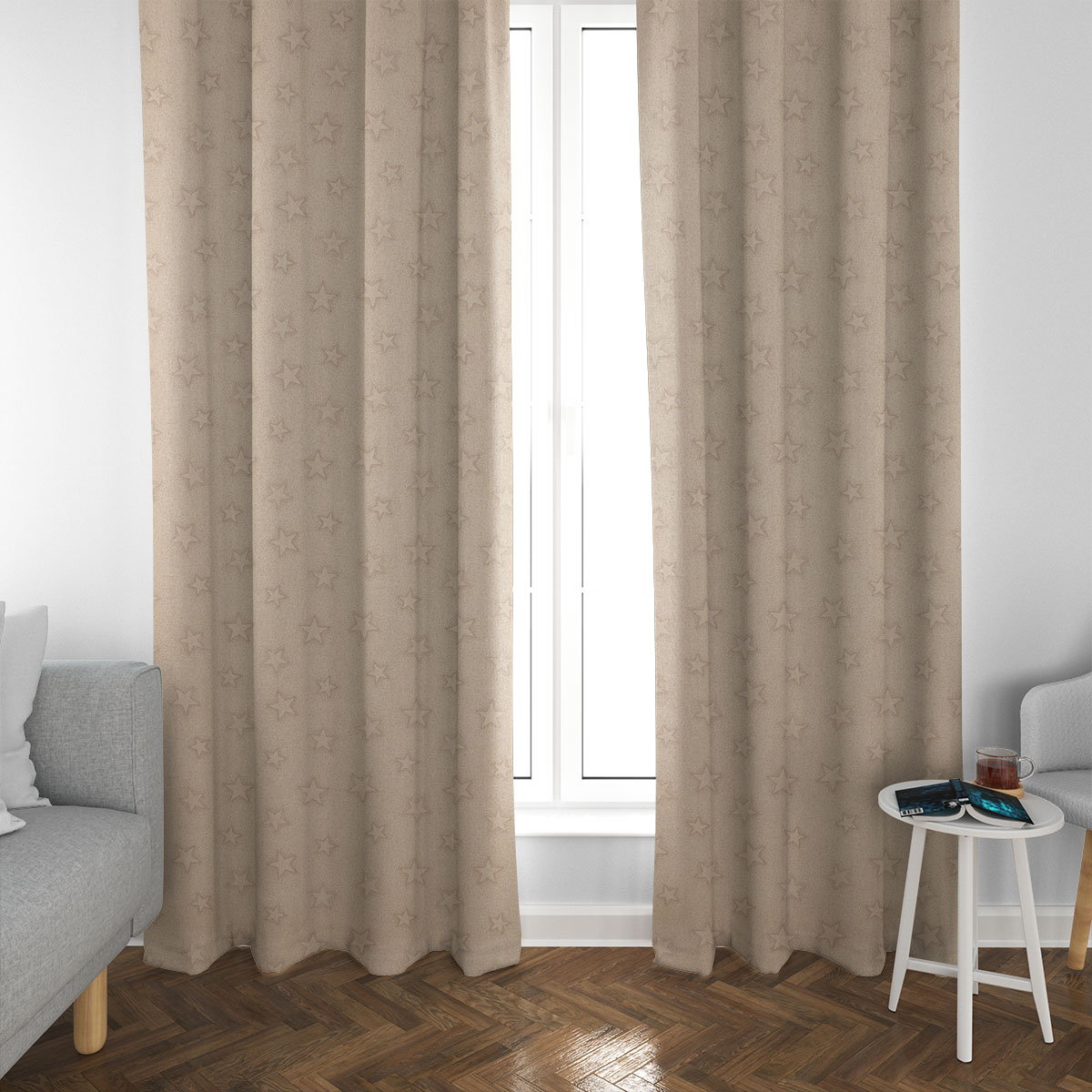 HÜBSCHES STERNMUSTER: Auf dem naturfarbenen Vorhang kommen die grau gepunkteten Sterne ganz dezent zur Geltung. Perfekt für jeden Wohnraum