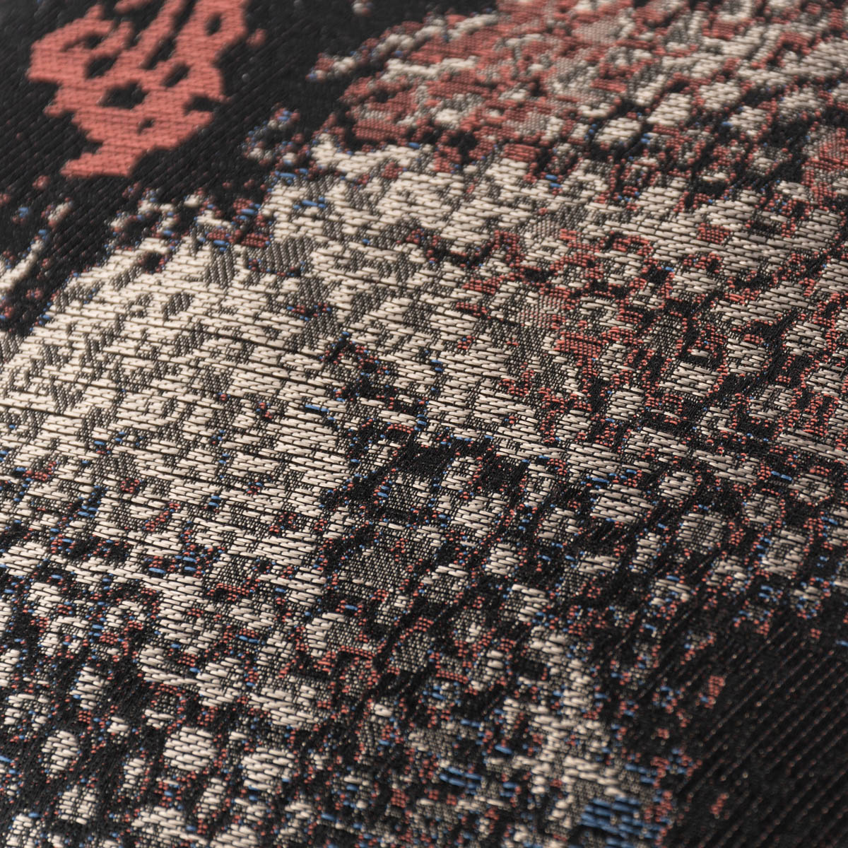 Diese Kissenhülle überzeugt mit ihrem großflächigen Blütenmuster, das durch eingewebte Punkte entsteht. Die Hülle hat einen leichten Schimmer, der sich durch die eingarbeiteten Metalliceffekte noch verstärkt. Diese werden durch verschiedene Effektgarne in verschiedenen Farben kreiert und machen das Kissen zu einem echten Eyecatcher.