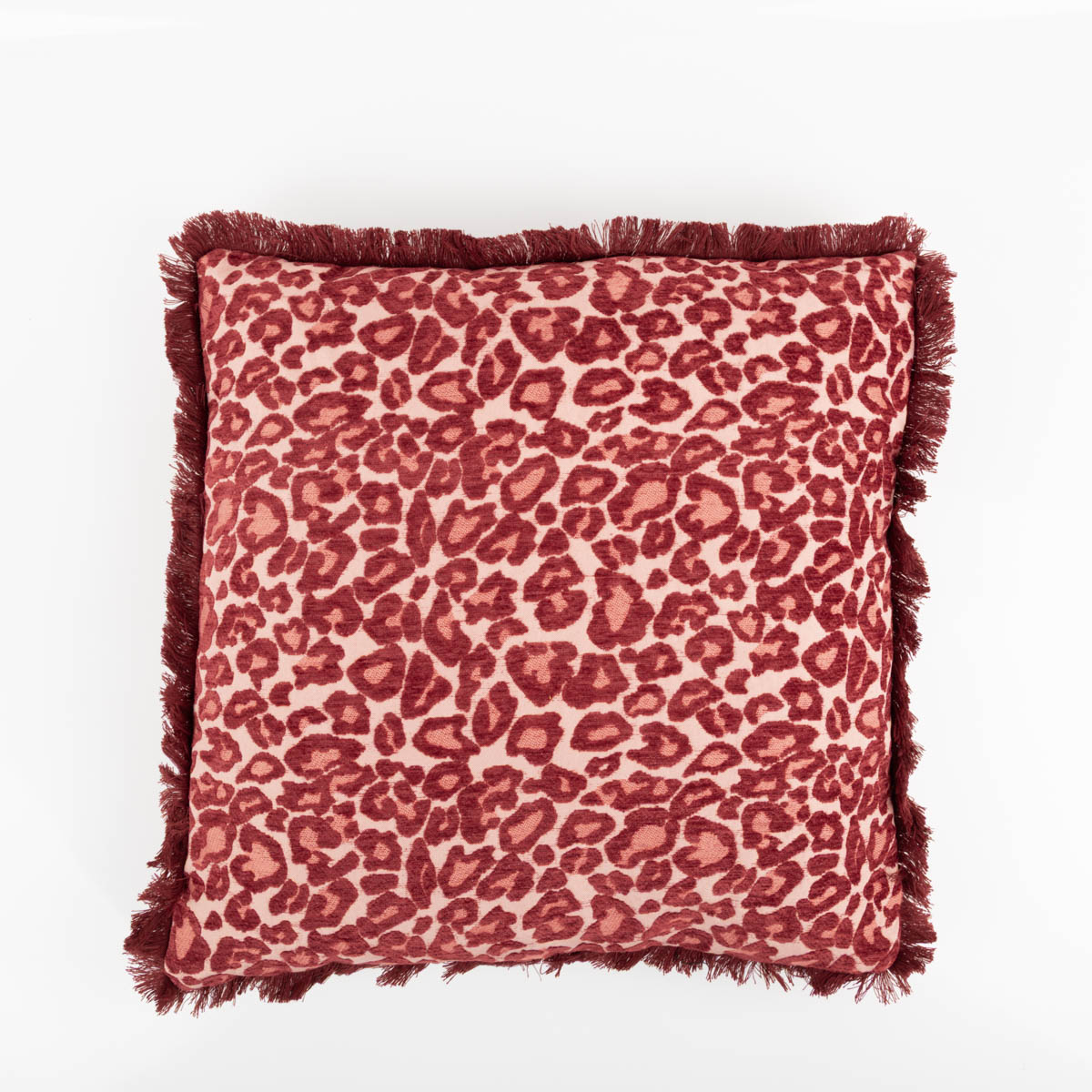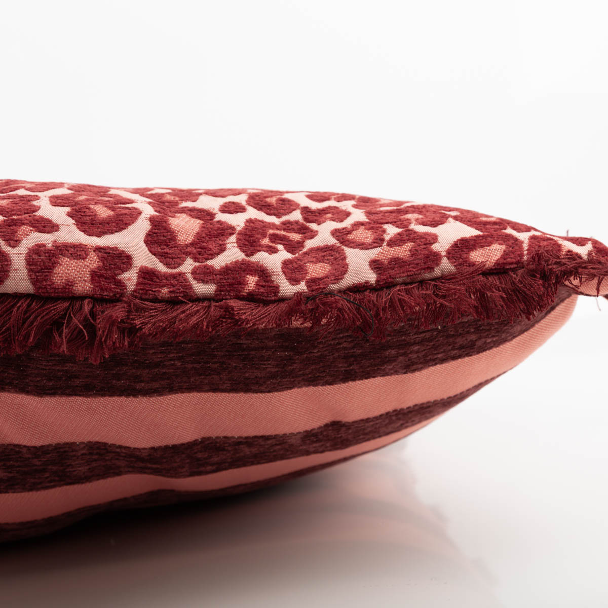 Dekokissen Nisa Leo & Streifen zweiseitig mit Fransenrand rot 45x45cm