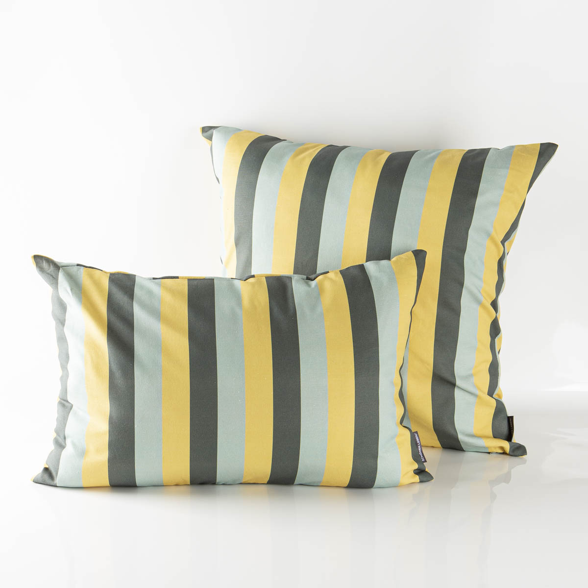 Wunderschöne Kissenhülle aus Baumwolle mit Streifen in Grün, Grau und Hellblau in verschiedenen Größen oder nach Maß von SCHÖNER LEBEN.