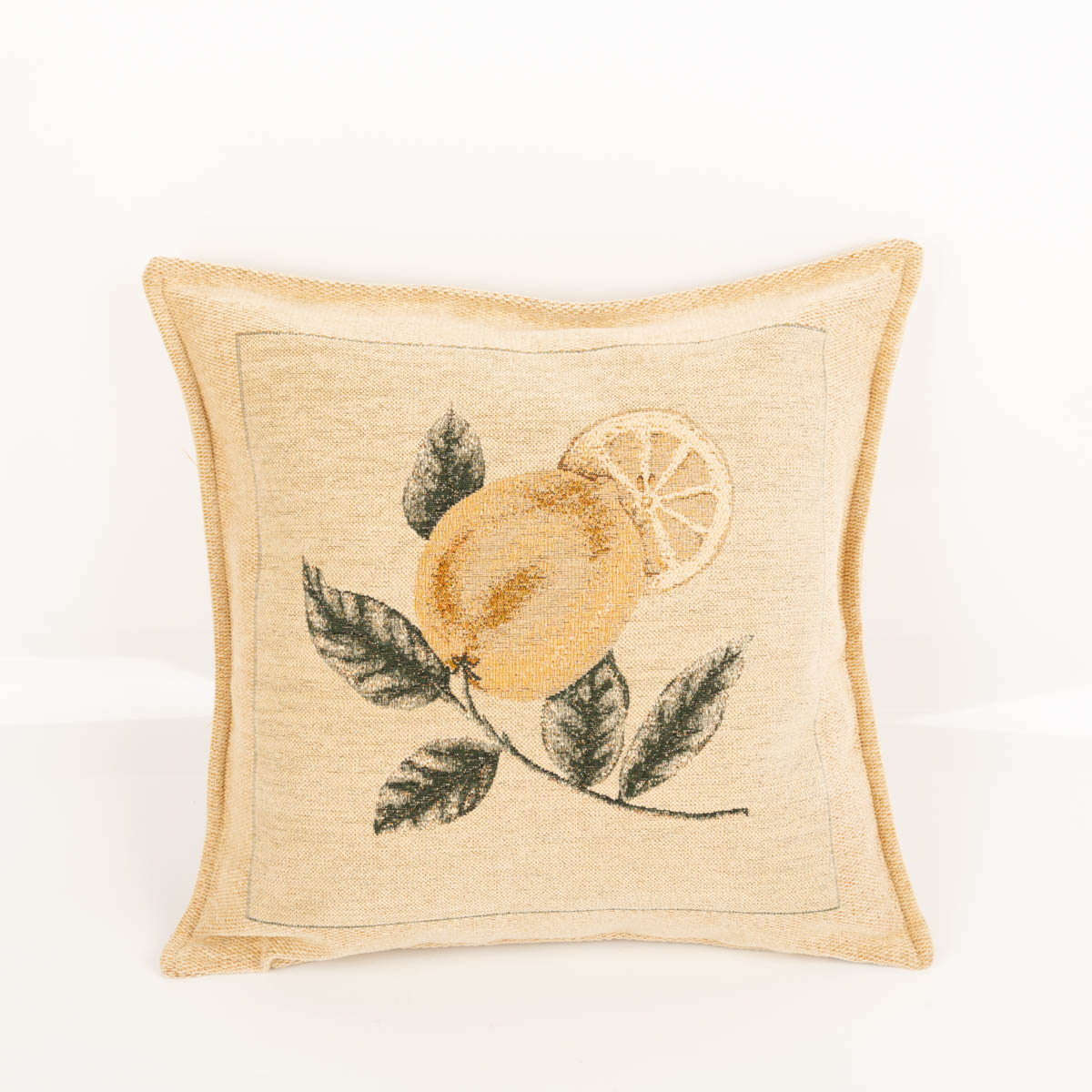 Gobelin Kissenhülle Zitrone beige 42x42 cm: mediterraner Akzent mit eingewebtem Muster
