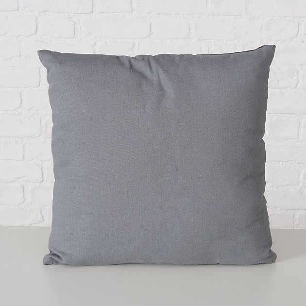 Die Rückseite ist aus uni grauem Stoff gefertigt. Dadurch wirkt das Kissen auch von hinten schlicht und harmonisch und lässt sich flexibel in unterschiedliche Wohnbereiche integrieren. So kannst du es gut mit weiteren Kissen, Plaids und Wohntextilien kombinieren.