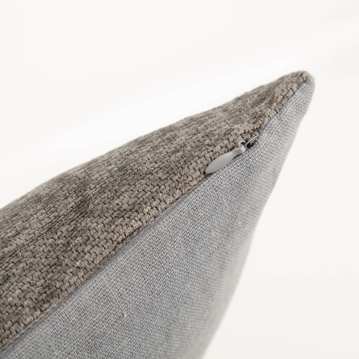 Flauschige Chenille-Vorderseite mit markantem Motiv und uni graue Rückseite für eine harmonische und vielseitig kombinierbare Optik