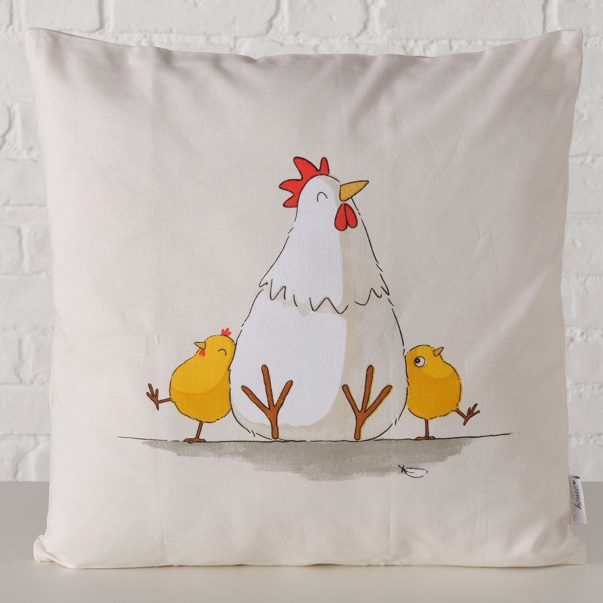 Dekokissen von Boltze mit liebevollem Motiv aus Henne und Küken für Frühling, Ostern und gemütliche Wohnräume